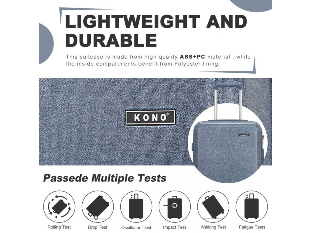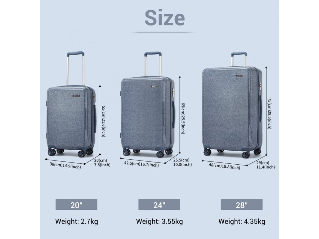 3dílná minimalistická sada kufrů z ABS+PC - 33/60/92 L Kono - džínově modrá
