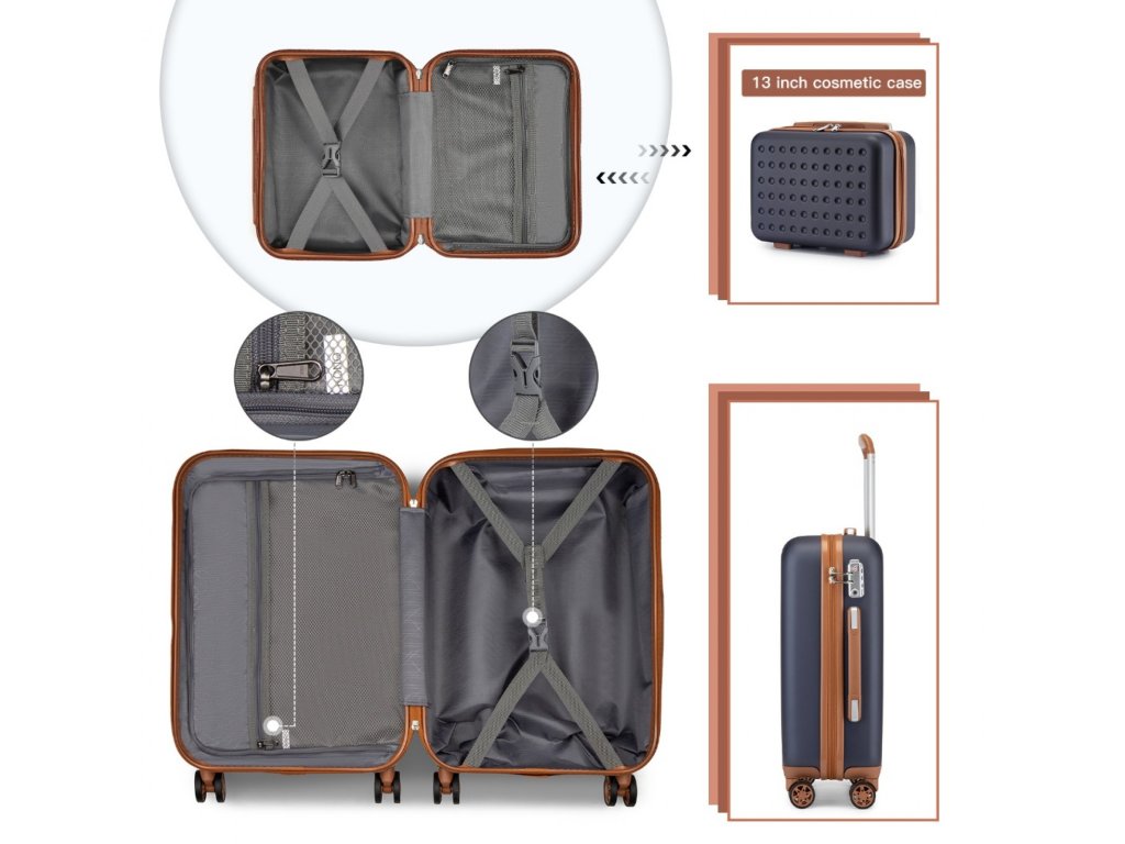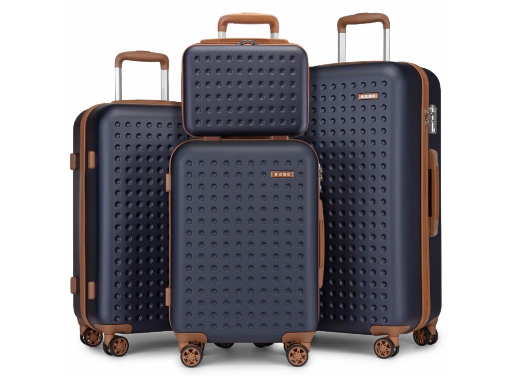 4dílná sada cestovních ABS+PC kufrů Kono - navy-hnědá
