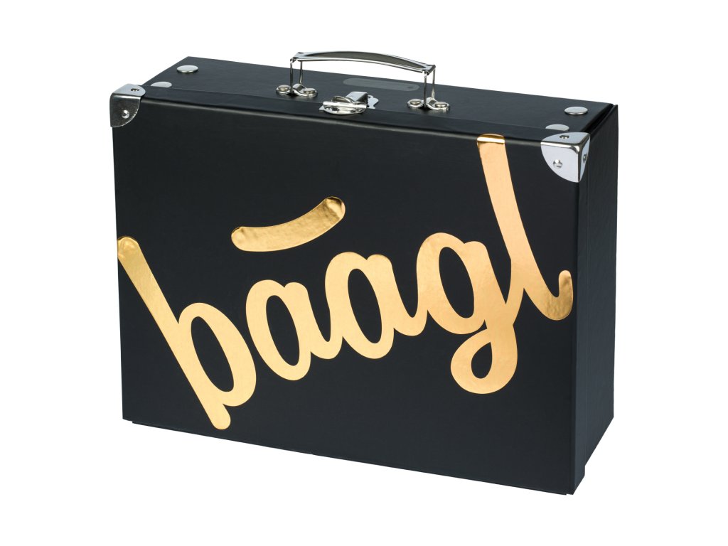 Praktický skládací kufřík z laminovaného papíru v designovém provedení s logem BAAGL. Kufřík se výborně hodí do školy pro potřeby výtvarné výchovy.