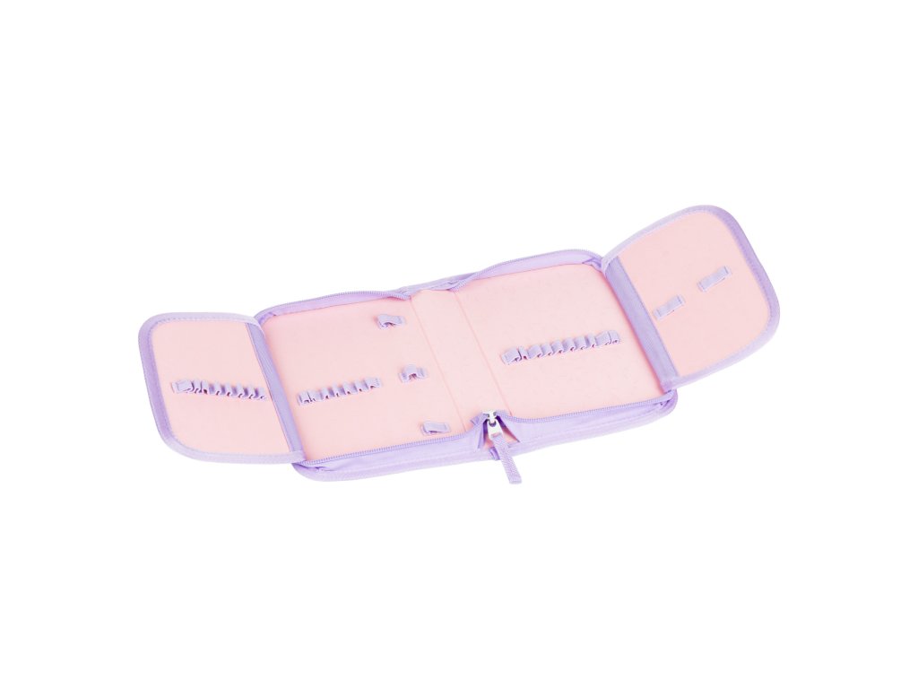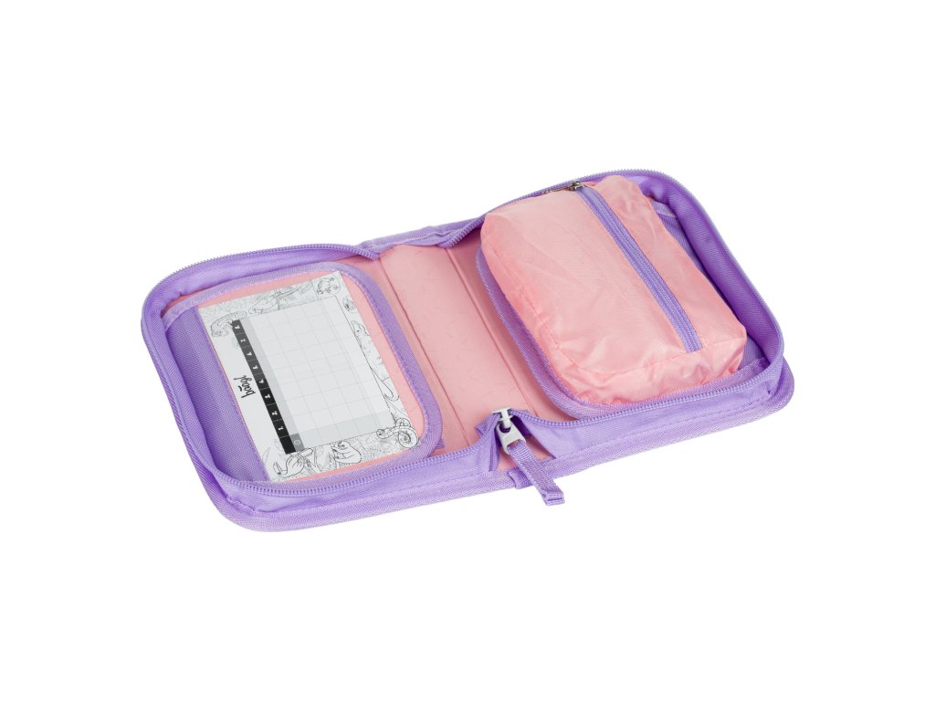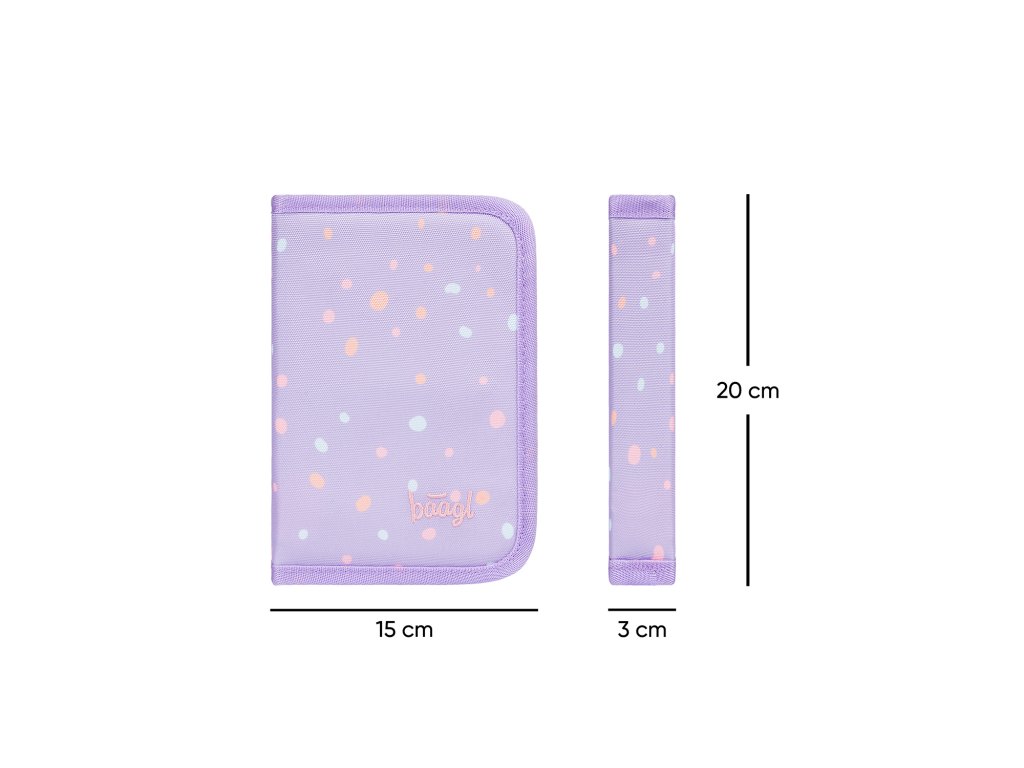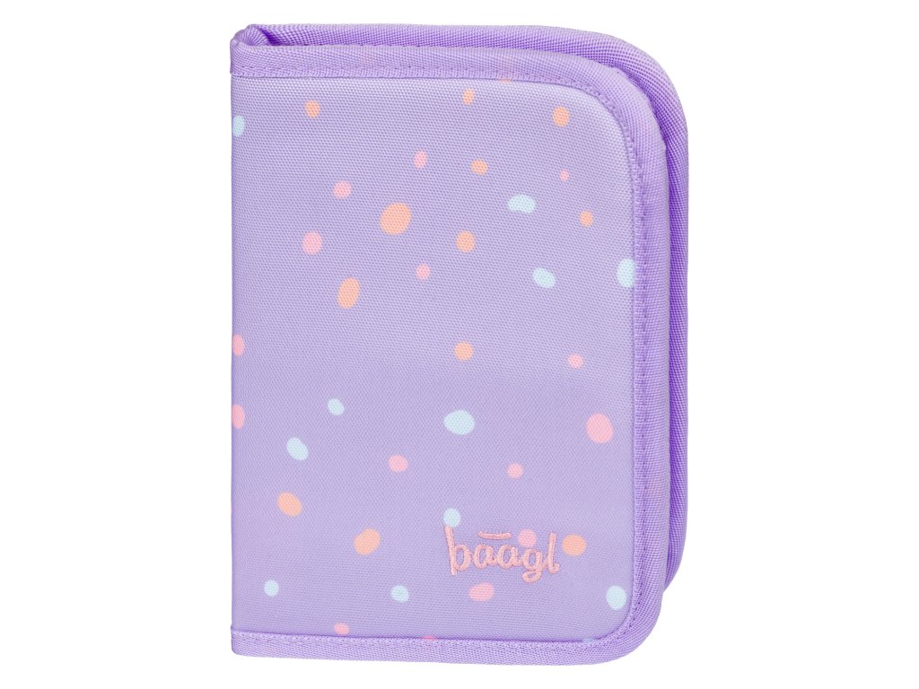 Jednokomorový školní penál BAAGL s dvěma chlopněmi. Penál ve fialové barvě v designu Mazlíčci. Vhodný od první třídy základní školy.