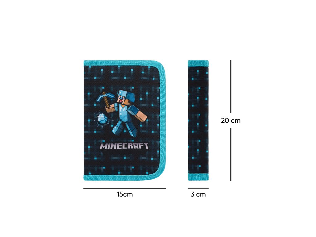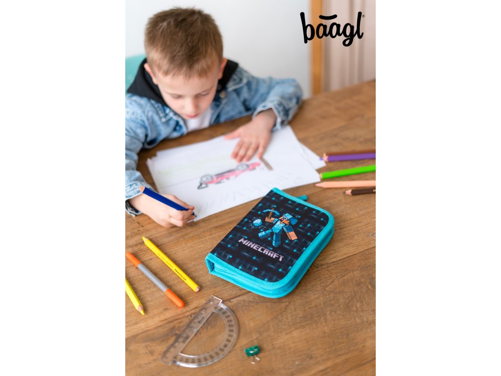 Jednokomorový školní penál BAAGL v designu Minecraft s dvěma chlopněmi. Vhodný od první třídy základní školy.