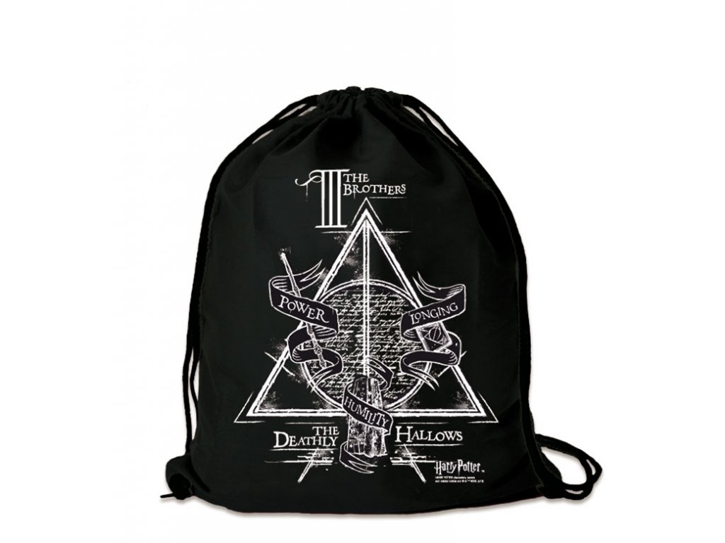 Oficiálně licencovaný vak, vhodný na sport nebo každodenní použití. S potiskem Harry Potter relikvie smrti v černé barvě.