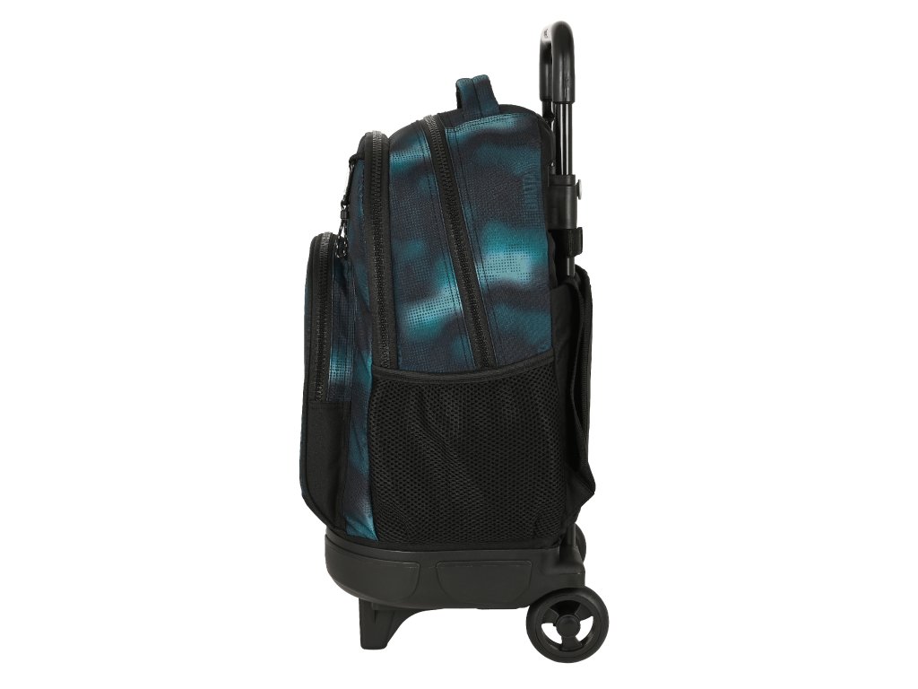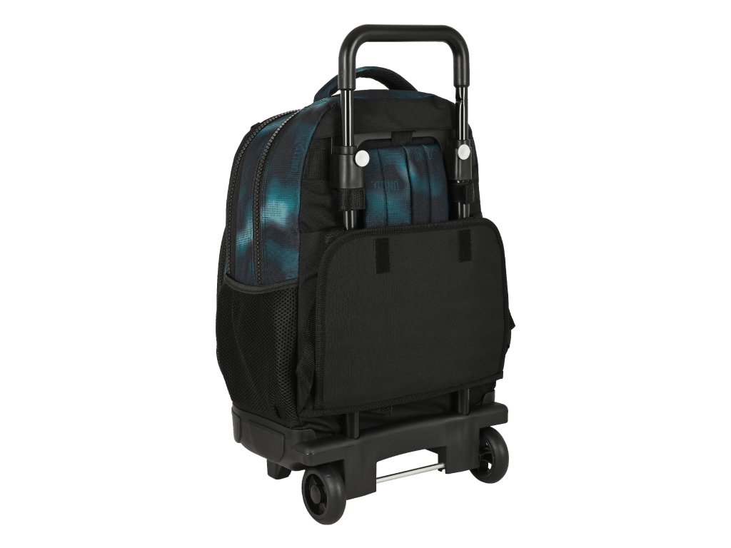 Dvoukomorový školní batoh na silikonových kolečkách s teleskopickou rukojetí v designu Nomad o objemu 32L.