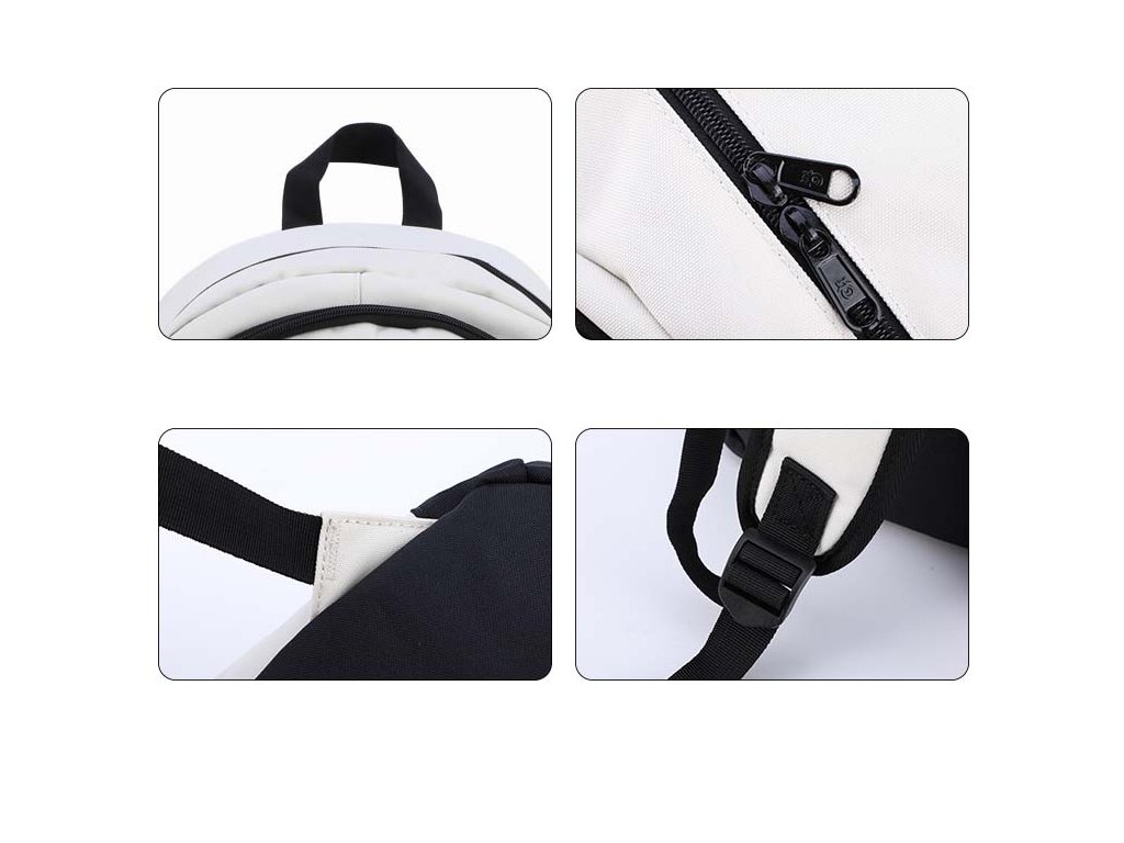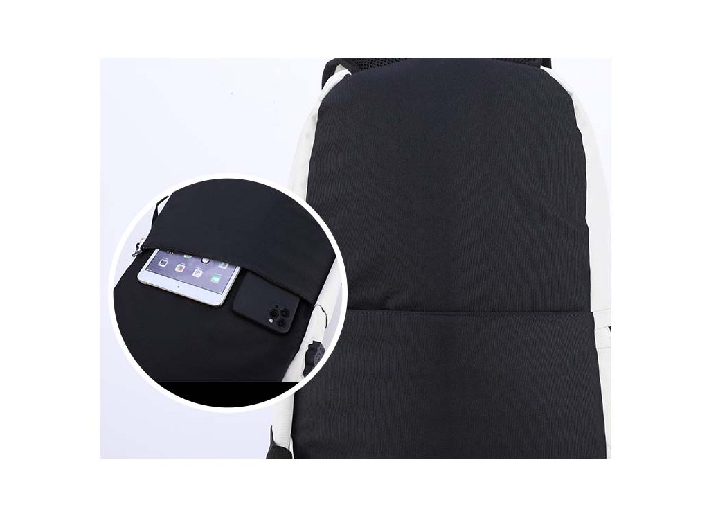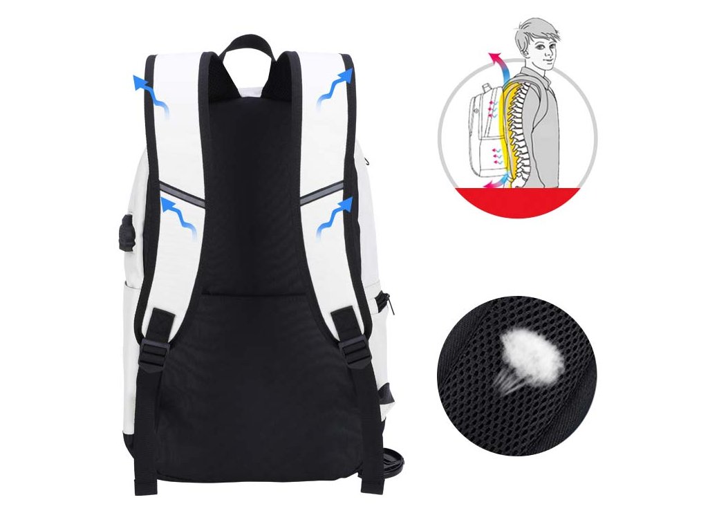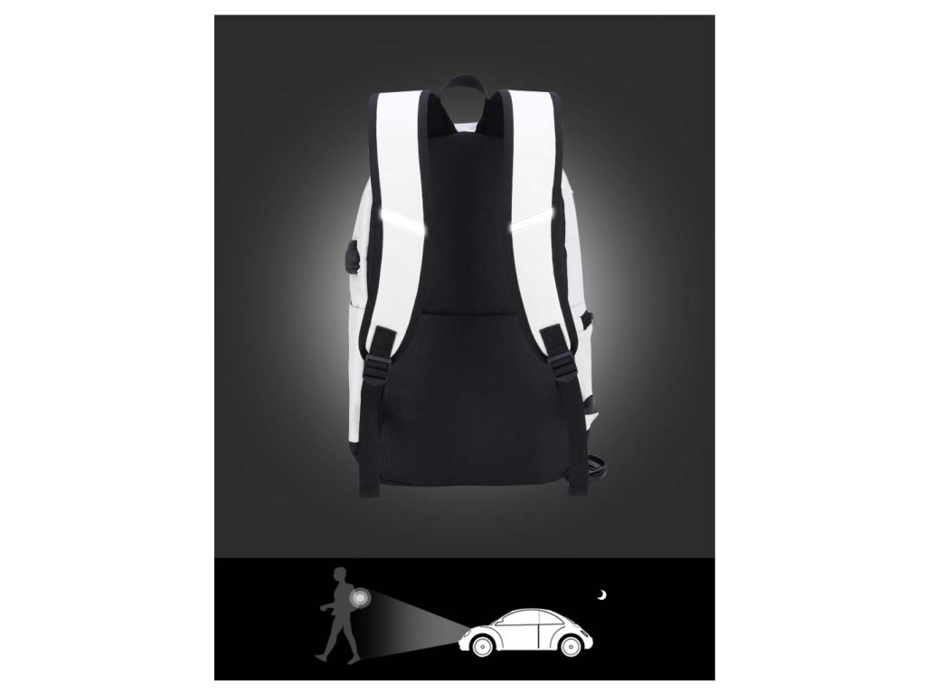 Moderní školní batoh pro teenagery s USB portem značky Senkey & Style - Music v bílém provedení.
