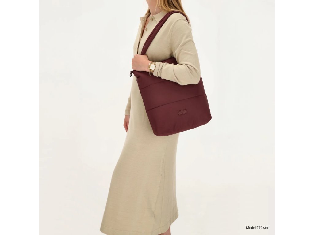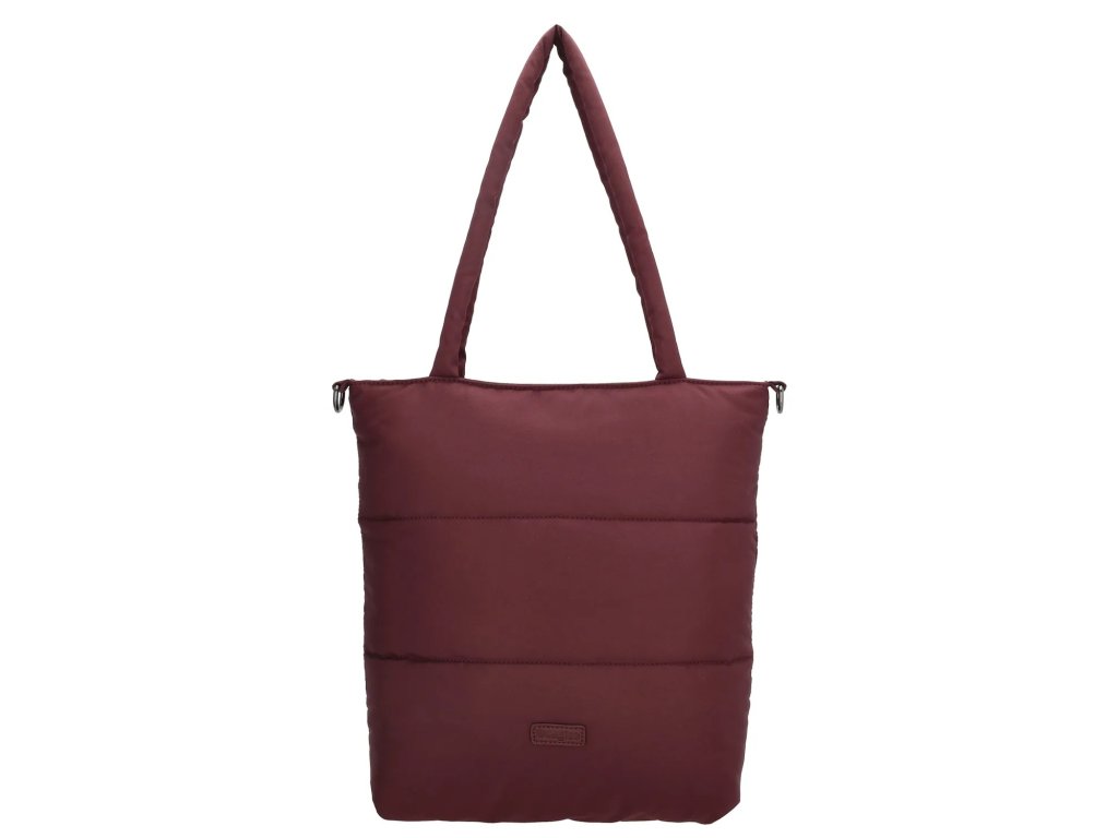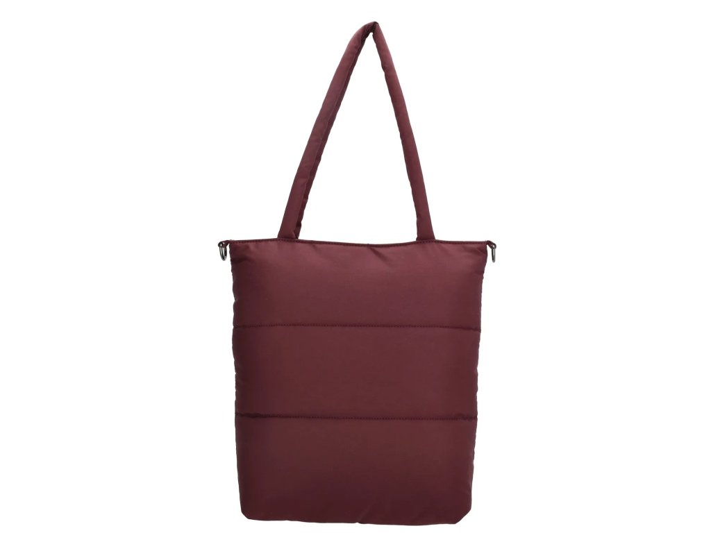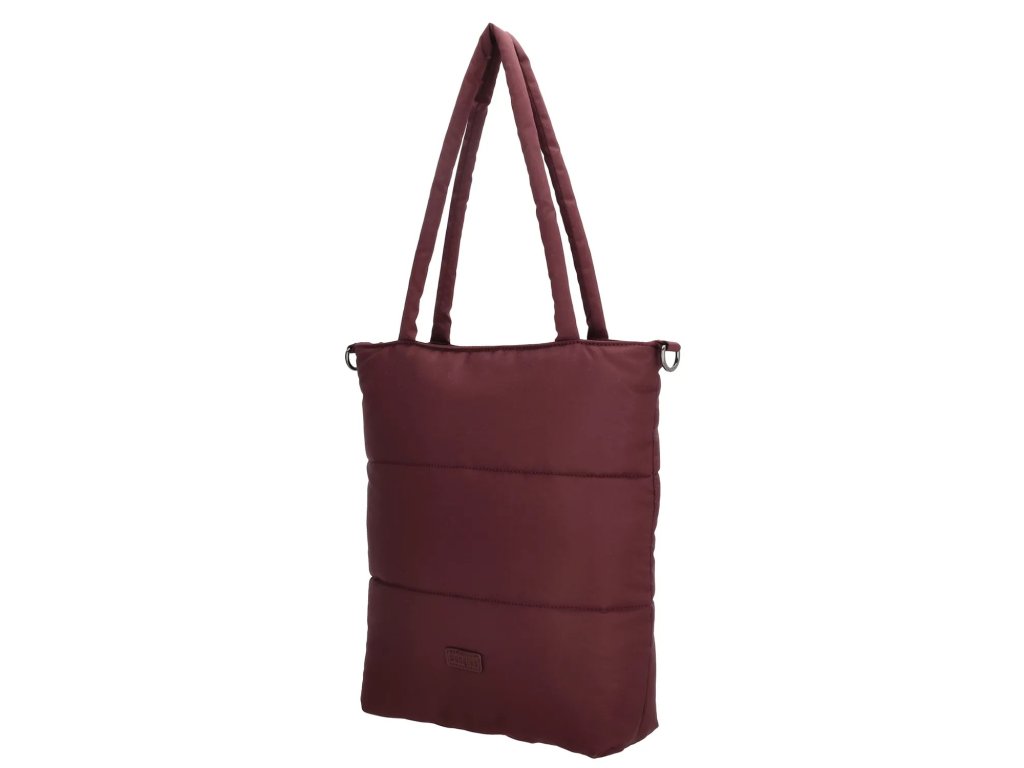 Taška je vyrobena z odolného nylonu a polyesteru, což zajišťuje její dlouhou životnost i snadnou údržbu. Jemné prošívání dodává elegantní vzhled a vínová barva působí nadčasově a sofistikovaně.