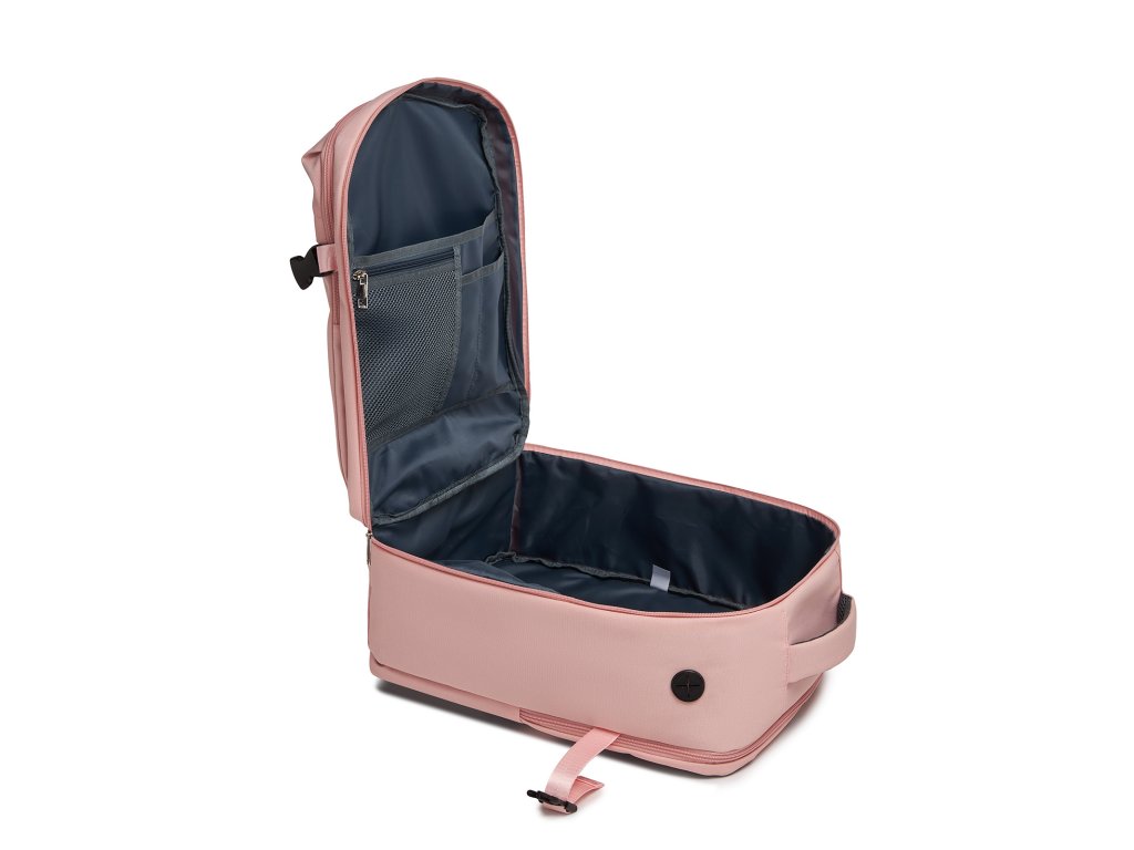 Stylový růžový batoh, který spojuje eleganci, praktičnost a cestovní funkčnost v jednom - ideální partner pro moderní ženy na cestách. 🌸✈️