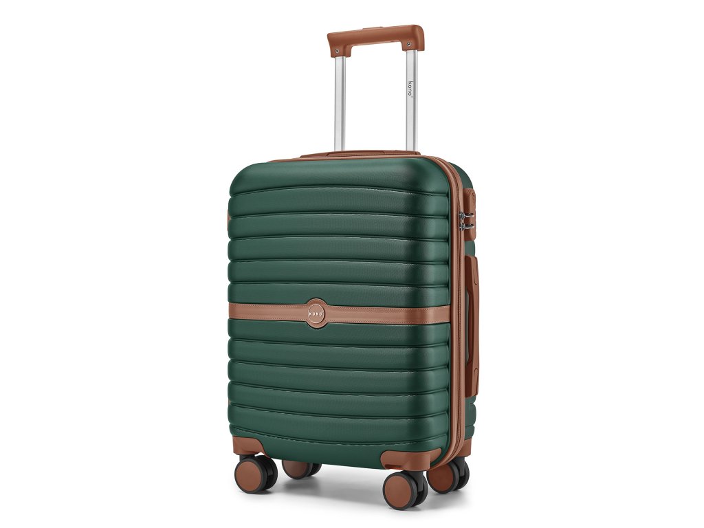 Cestovní kabinový kufr ABS+PC s pruhovaným vzorem Kono - 36 L - tmavě zelený