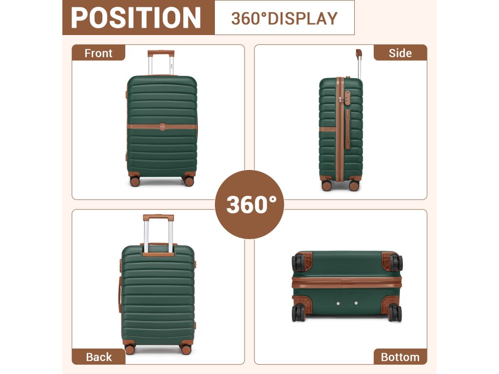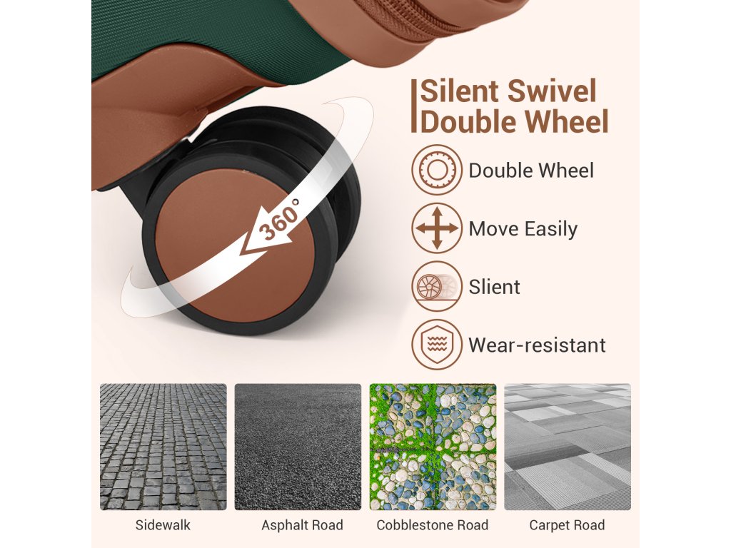 - 🛞 Tichá 360° spinner kolečka: Čtyři dvojitá kolečka letecké třídy umožňují plynulý a stabilní pohyb v jakémkoli směru.