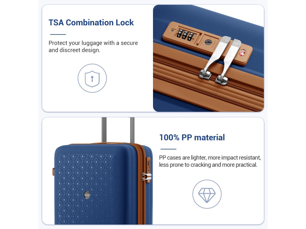Kufry z polypropylenu patří mezi nejoblíbenější volbu současných cestovatelů díky své odolnosti a nízké váze. Tento model Kono v elegantní modro-hnědé kombinaci je perfektní na obchodní cesty, víkendové pobyty i rodinné dovolené. Spojuje moderní vzhled, chytré funkce a dlouhou životnost.