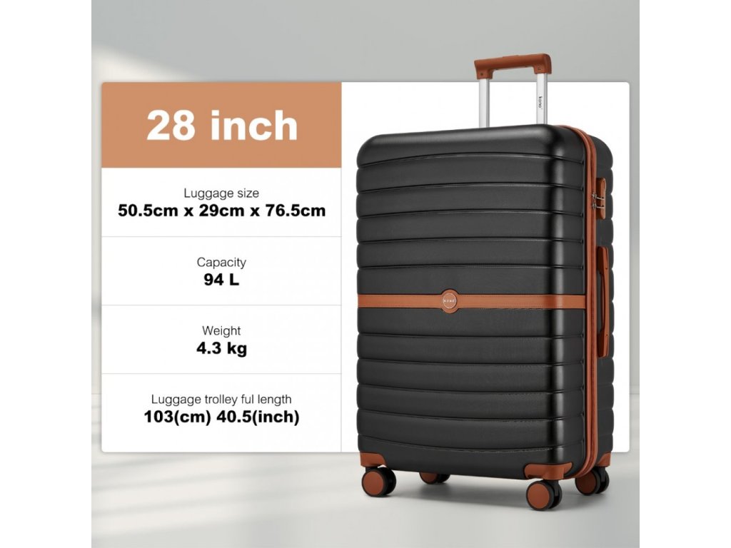 Cestovní kufr ABS+PC s pruhovaným vzorem Kono - 94 L - černo-hnědý