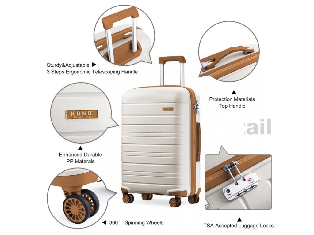 - TSA zámek: Tříčíselný kombinovaný zámek schválený TSA zajišťuje maximální bezpečnost a umožňuje kontrolu zavazadla bezpečnostními úřady bez poškození.