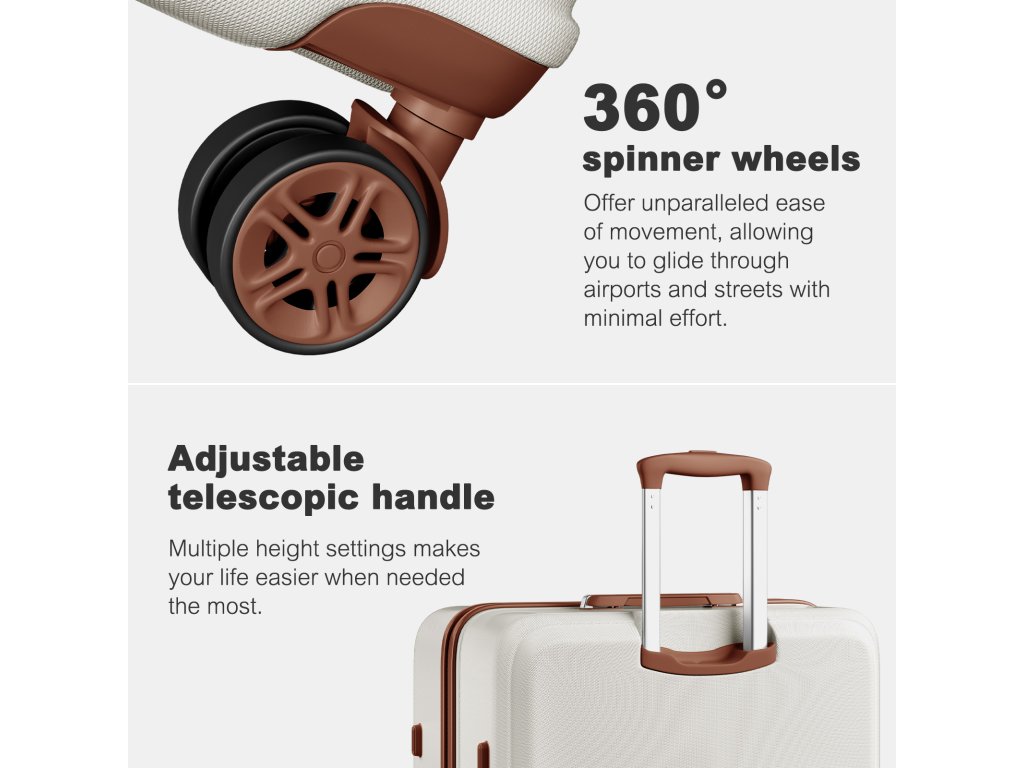 - 🛡 Pevná skořepina: Odolná konstrukce z ABS a PC chrání zavazadla před nárazy, tlakem i hrubším zacházením během přepravy.