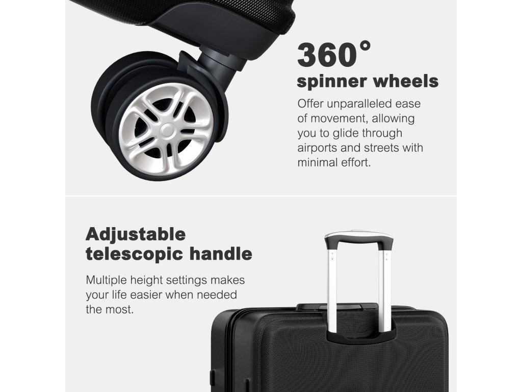 - 🛡 Pevná skořepina: Odolná konstrukce z ABS a PC chrání zavazadla před nárazy, tlakem i hrubším zacházením během přepravy.