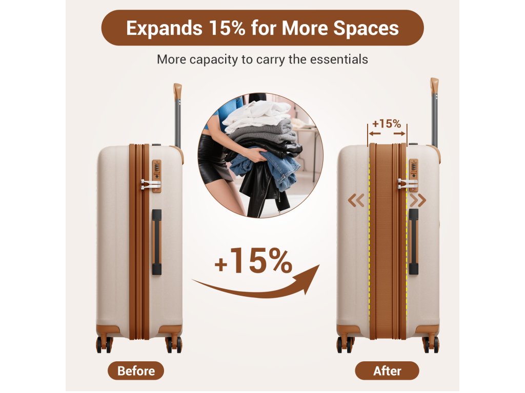 - Rozšiřitelný objem: možnost zvětšení kapacity až o 15 % – ideální pro nákupy nebo delší pobyty.
