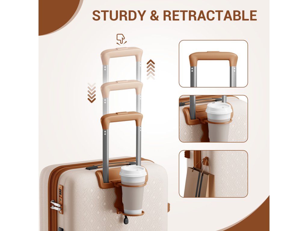 - Integrovaný držák na pohár: praktický detail pro kávu nebo láhev během čekání na letišti.