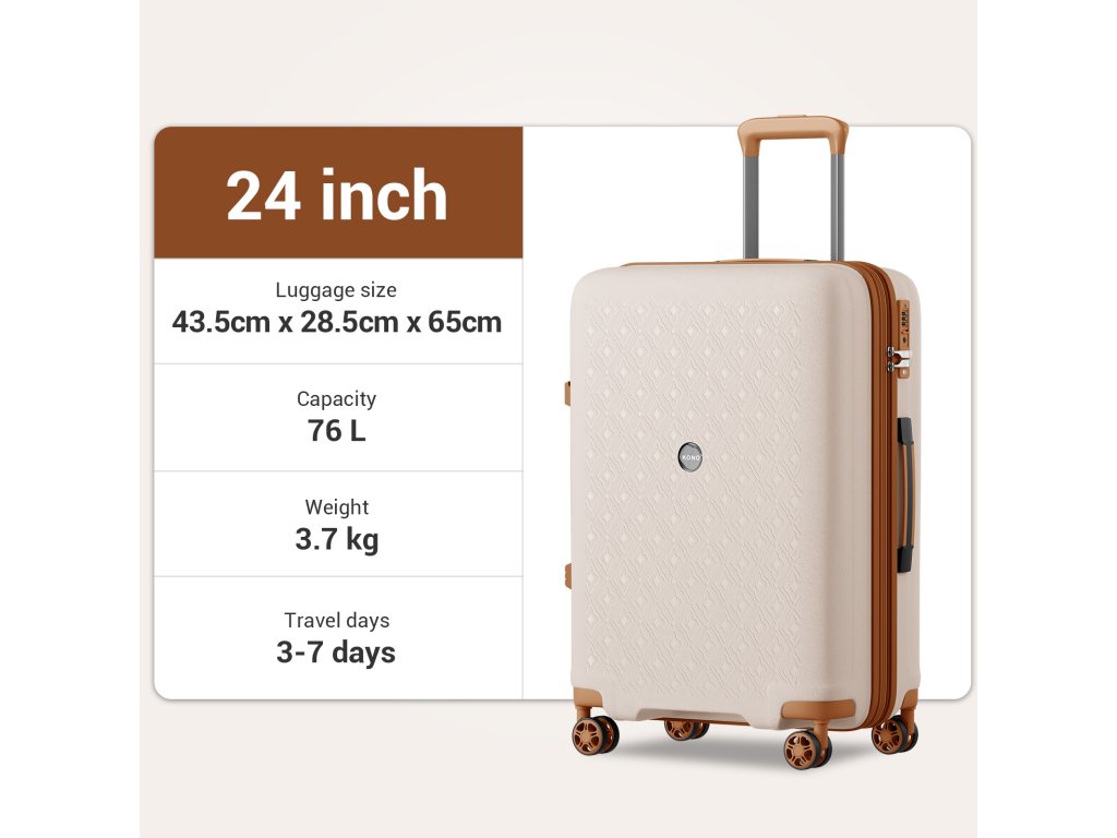 Velikost kufru odpovídá střední třídě (24"), ideální pro týdenní dovolenou či služební cestu.