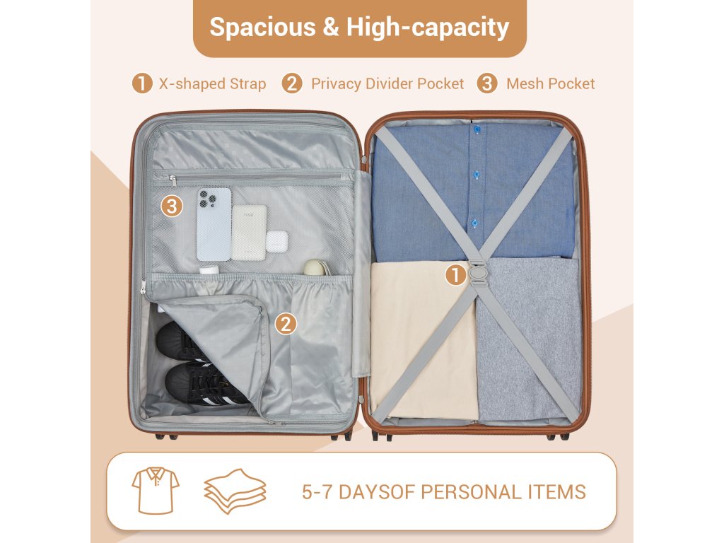 Kufr nabízí praktické členění pro pohodlné balení: