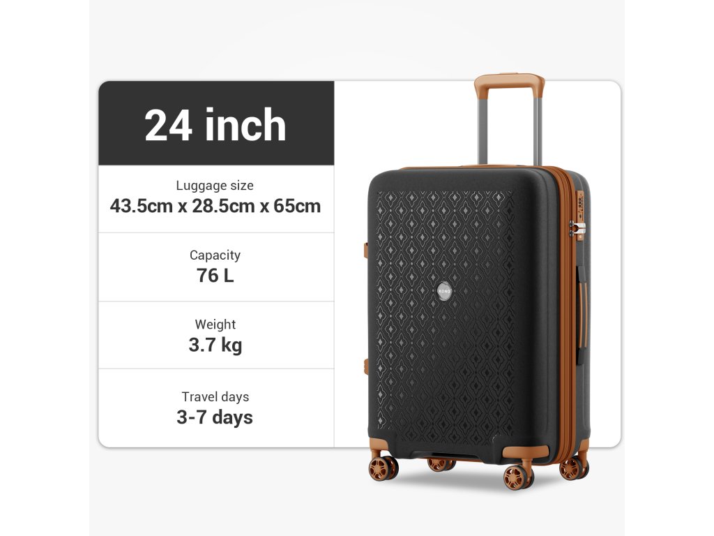 Velikost kufru odpovídá střední třídě (24"), ideální pro týdenní dovolenou či služební cestu.