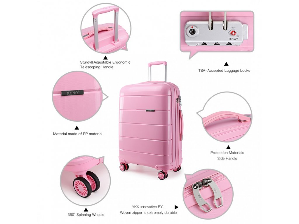 Cestovní kufr na kolečkách Kono Classic Collection - růžová 50L