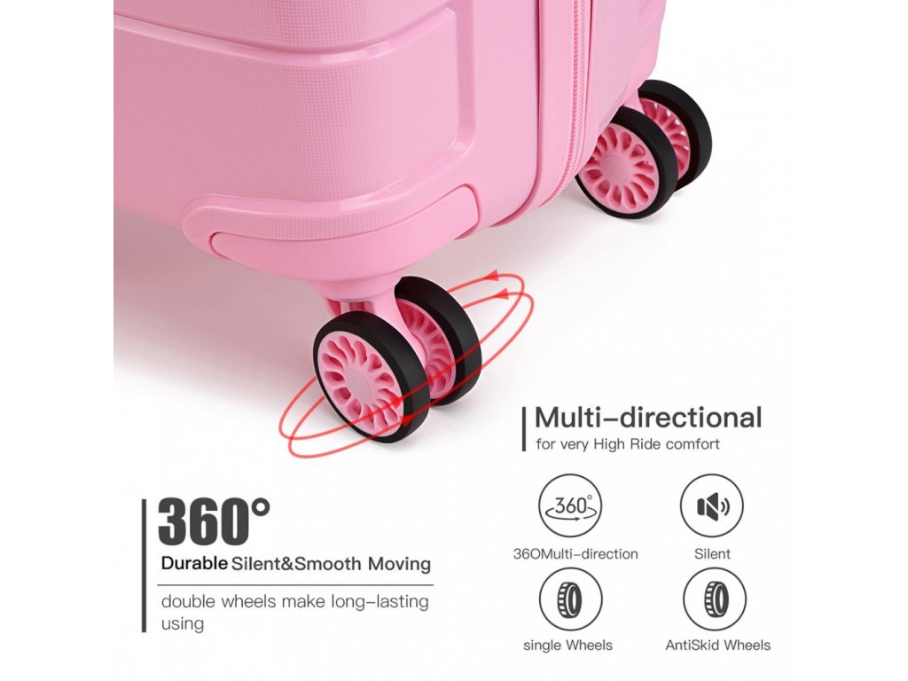 4 x 360° otočná kolečka rovnoměrně rozloží váhu vašeho kufru a zajistí snadné klouzání po rušných letištích nebo železničních nádražích.
