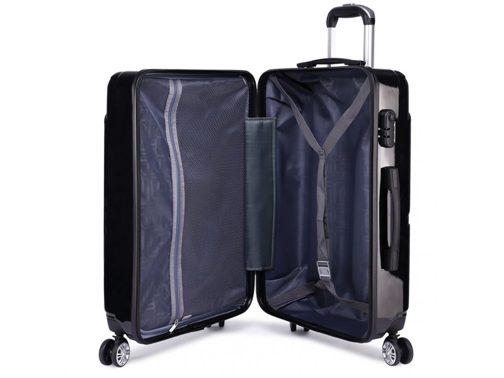Stylový kufr na kolečkách ve vysokém lesku v černém provedení. Vyrobeno z nejkvalitnějších surovin polykarbonátu, který se vyznačuje vysokou odolností a pevností. Kabinový kufr o objemu 48L.