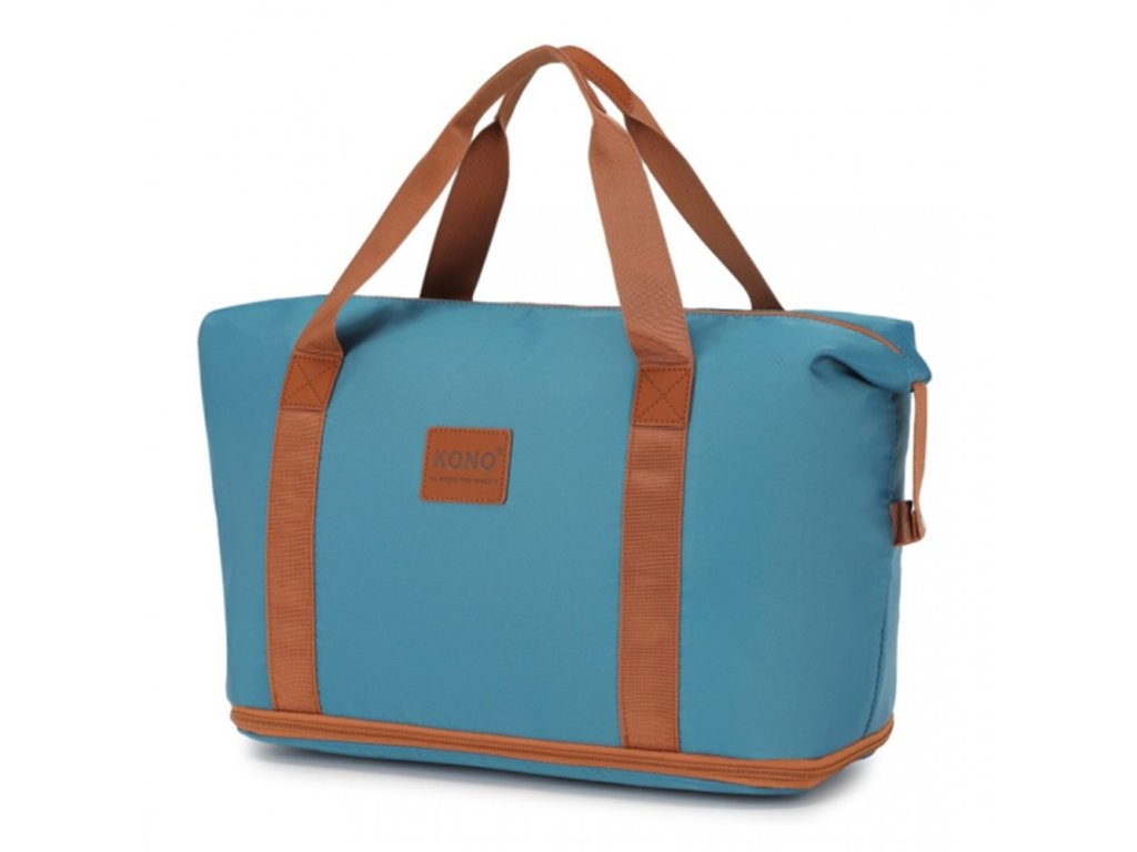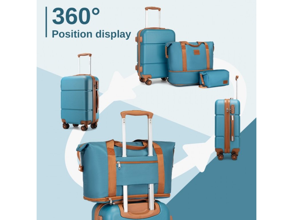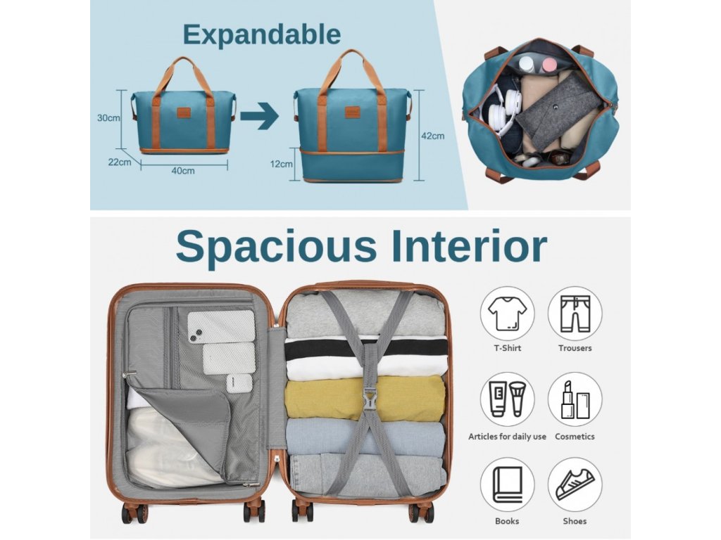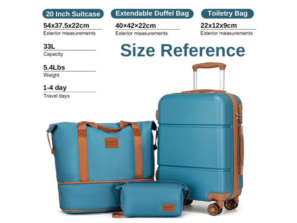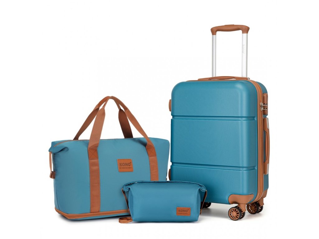 Cestovní sada 3 kusů - kabinový kufr, cestovní taška a kosmetička KONO - Tyrkysovo-hnědá - 33L