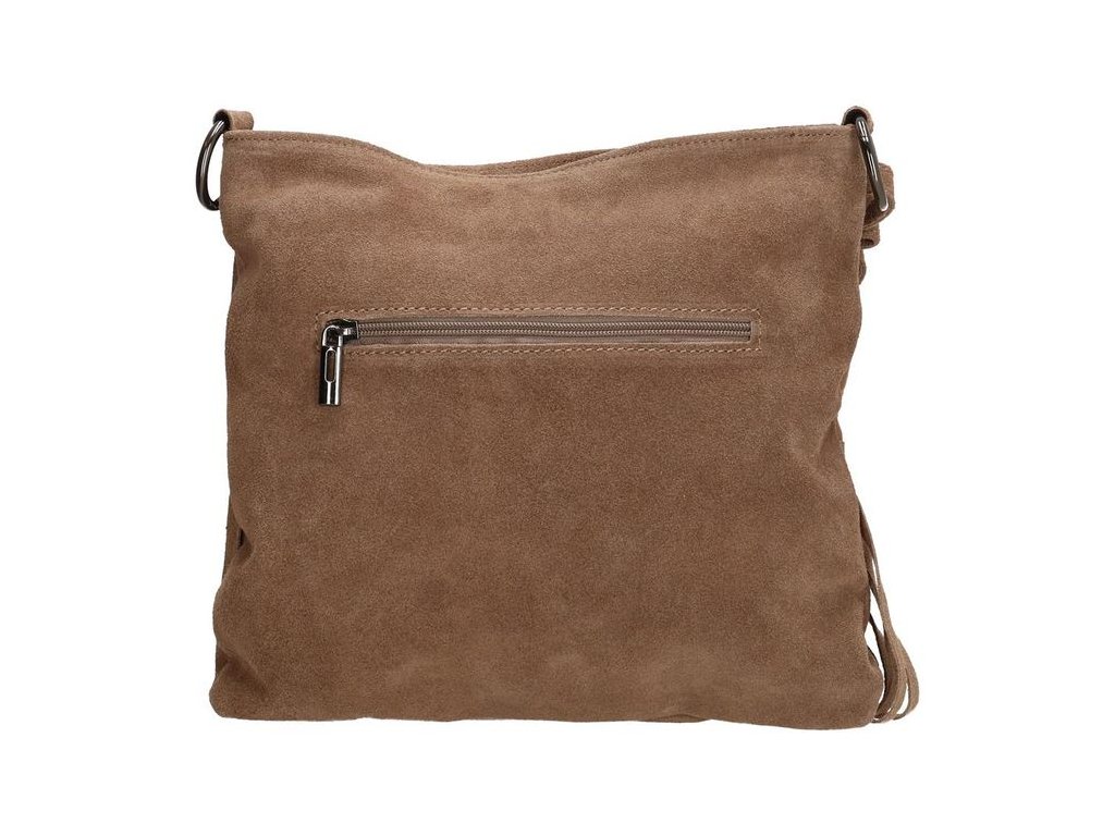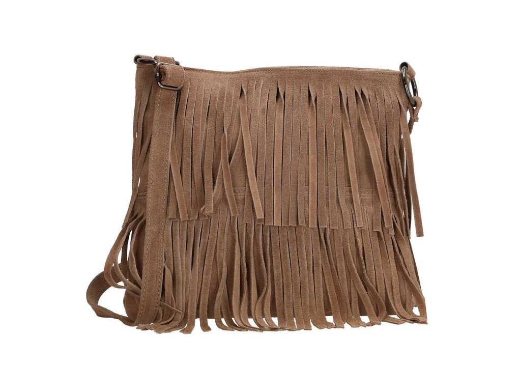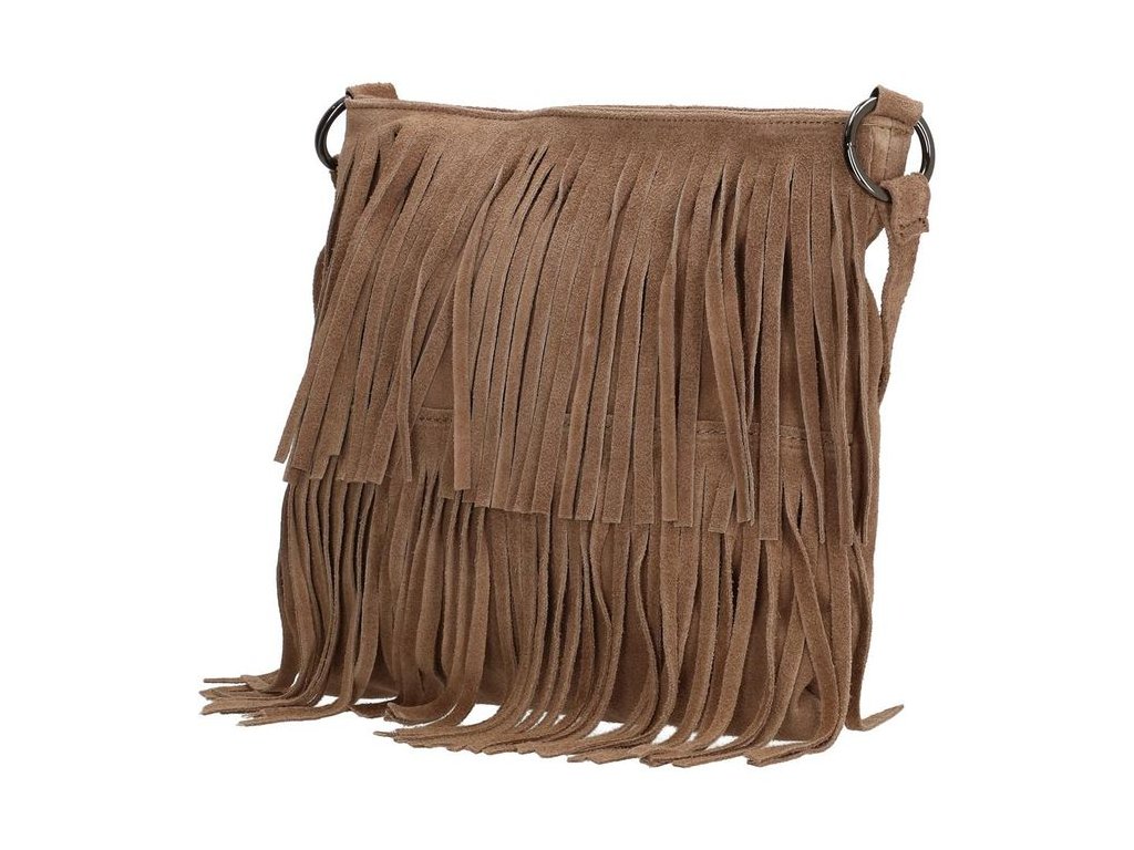 Hravá a stylová kožená crossbody kabelka s třásněmi vyrobena z kvalitní broušené kůže.