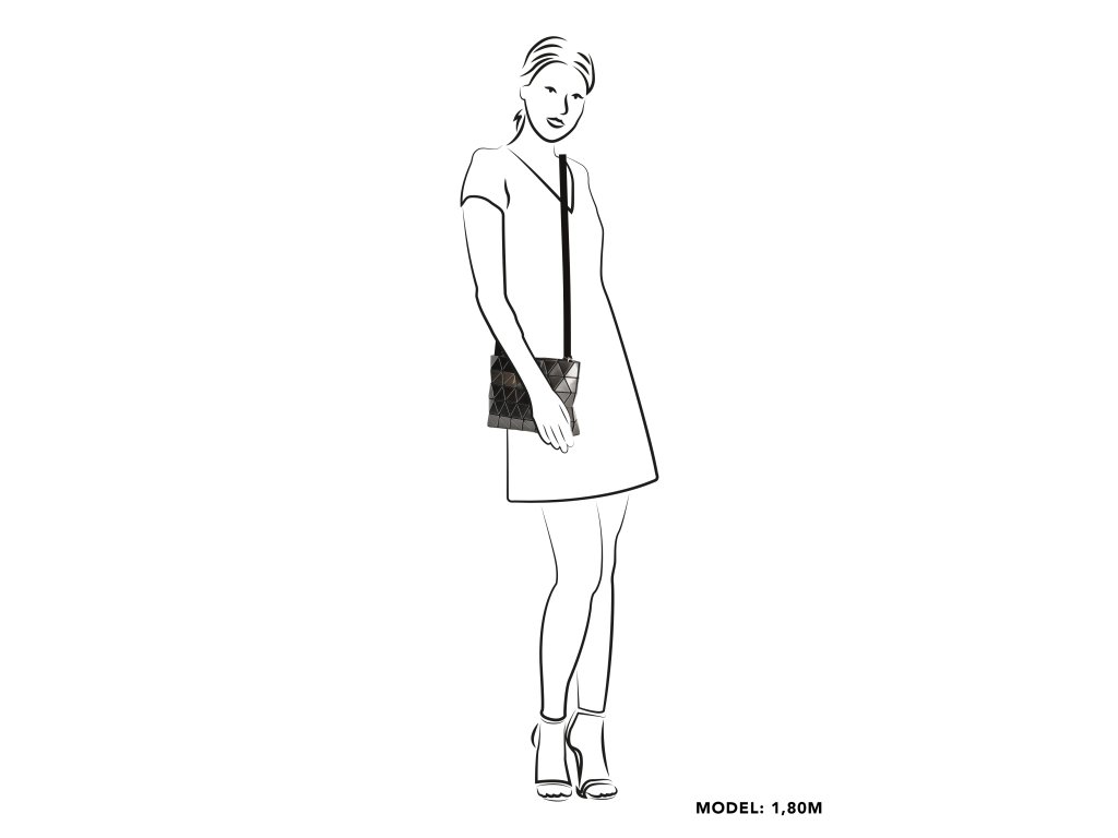 Obsahuje: hlavní kapsa na zip ve které se nacházejí další tři postranní kapsy z toho jedna na zip. Taška se nosí přes rameno jako crossbody nebo na rameni díky odnímatelnému ramennímu popruhu.