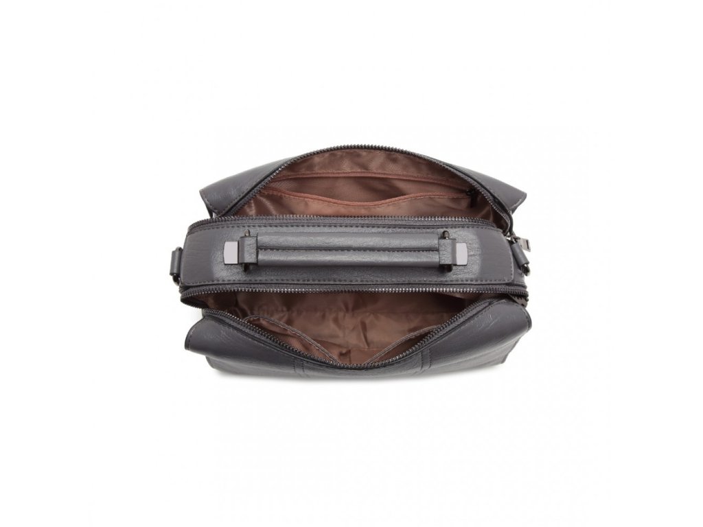 Praktická a sofistikovaná dámská crossbody kabelka se dvěma hlavními přihrádkami na zip. V šedém provedení.