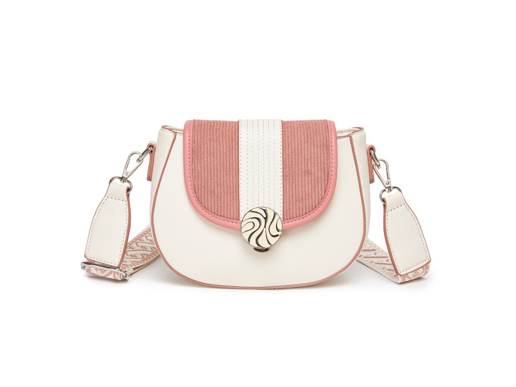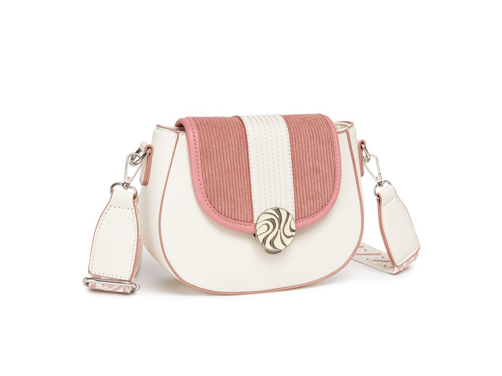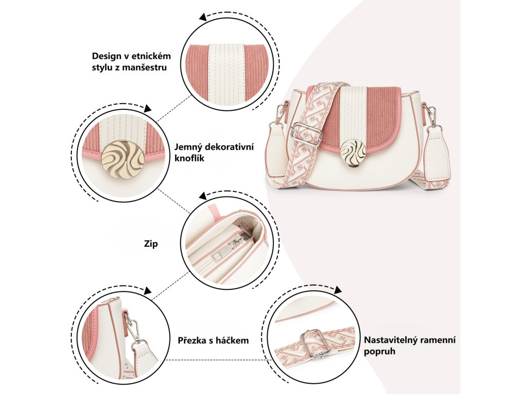 Dámská crossbody kabelka s manšestrovou klopou Miss Lulu - růžová a béžová