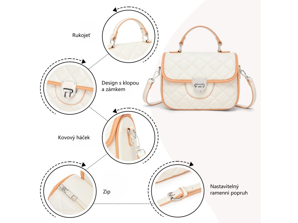 Kabelka Miss Lulu nabízí dvě možnosti nošení - pomocí pevného horního držadla jako elegantní taška do ruky nebo s nastavitelným a odnímatelným popruhem přes rameno či křížem přes tělo. Přizpůsobí se tak každé příležitosti, od formální schůzky až po víkendový brunch.