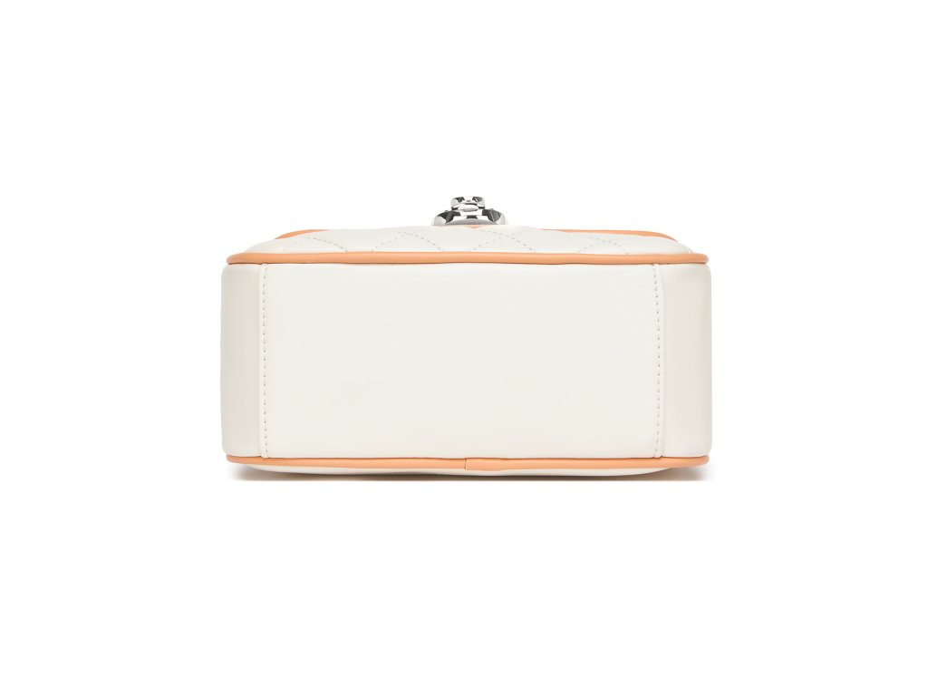 Kabelka zaujme svým nadčasovým prošívaným vzorem a stříbrnými kovovými doplňky. Horní klopa se zavírá kovovým zámkem, zatímco hlavní prostor je chráněn zipem - vaše cennosti tak zůstanou v bezpečí. Vnitřek je podšitý odolným polyesterem, který se snadno čistí a udržuje.