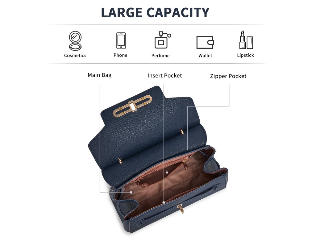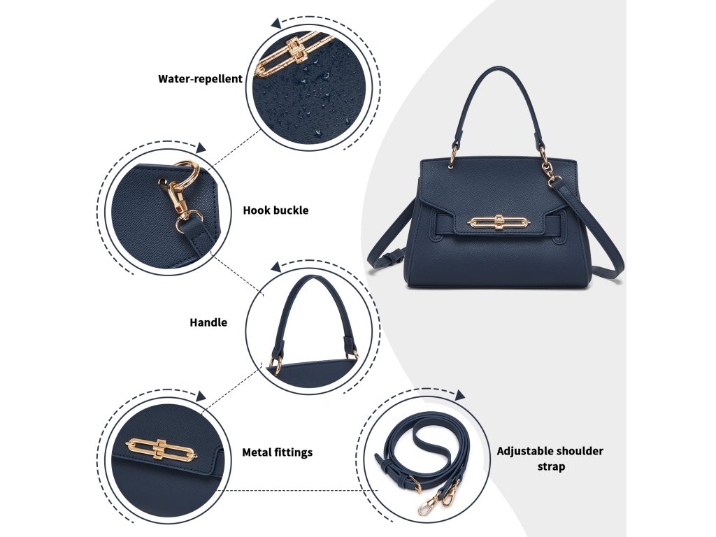 - 🔐 Bezpečné zapínání: Otočný kovový zámek zajistí rychlé a jisté uzavření kabelky.