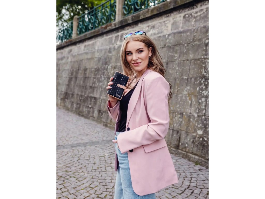 - ⚪ Bodkovaný design: Hravý vzor dodává peněžence originalitu a ženský půvab.