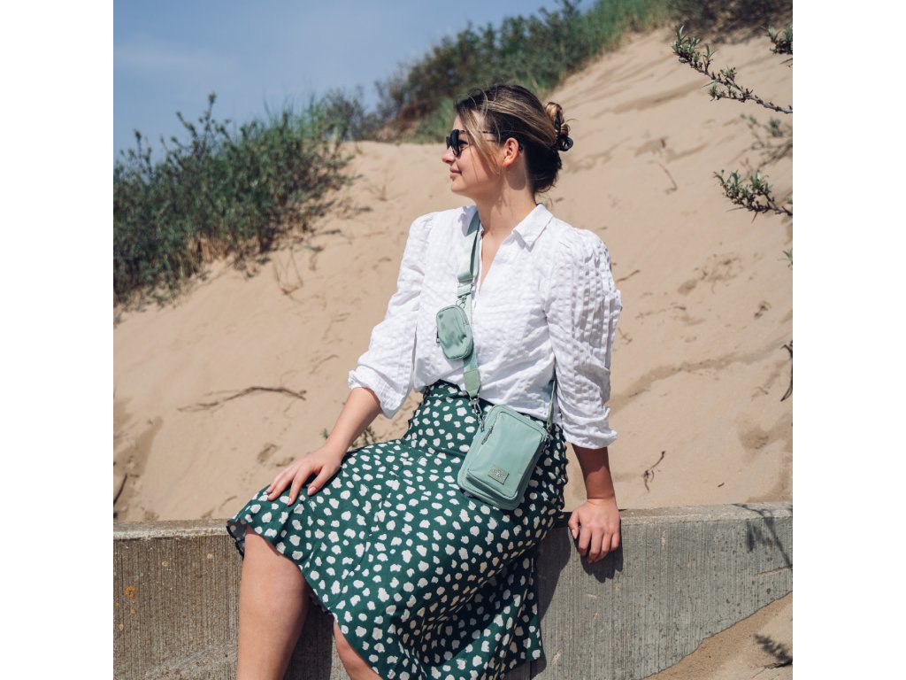 - Odnímatelná kapsička na popruhu: Praktická malá kapsička připojená k popruhu je ideální na drobnosti, které chcete mít vždy po ruce, například sluchátka nebo mince.