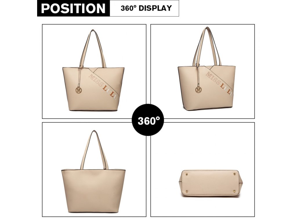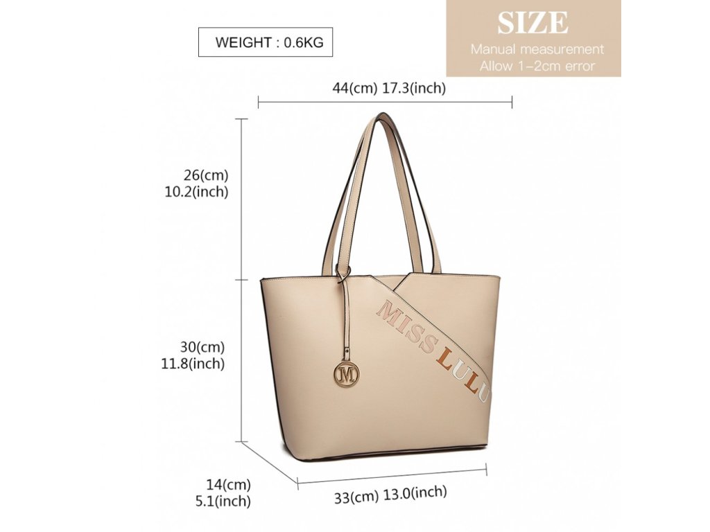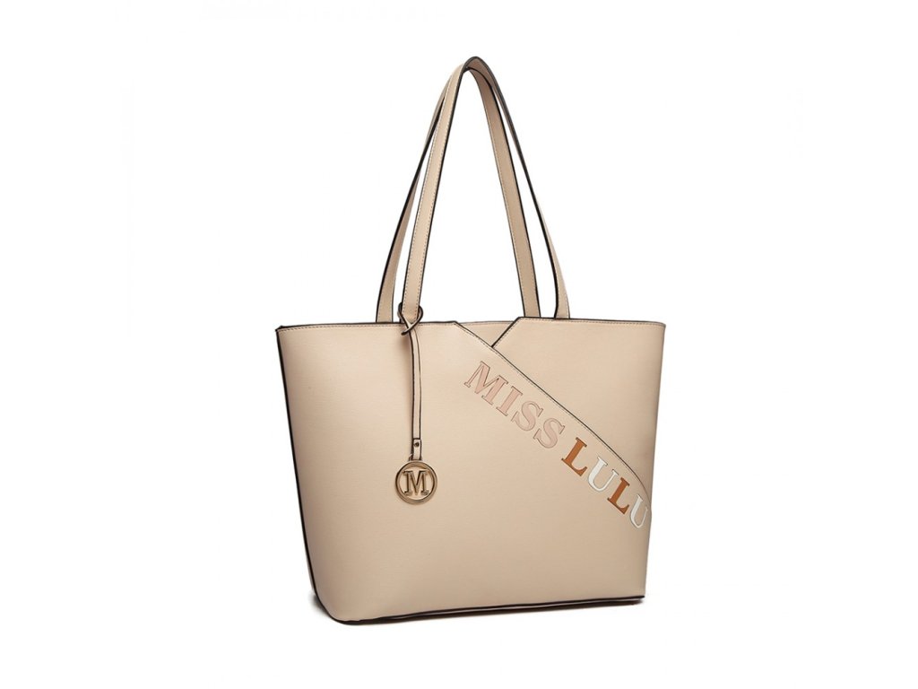 Moderní kabelka s výšivkou nápis Miss Lulu vhodná k velké škále outfitů a příležitostí. V béžovém provedení.