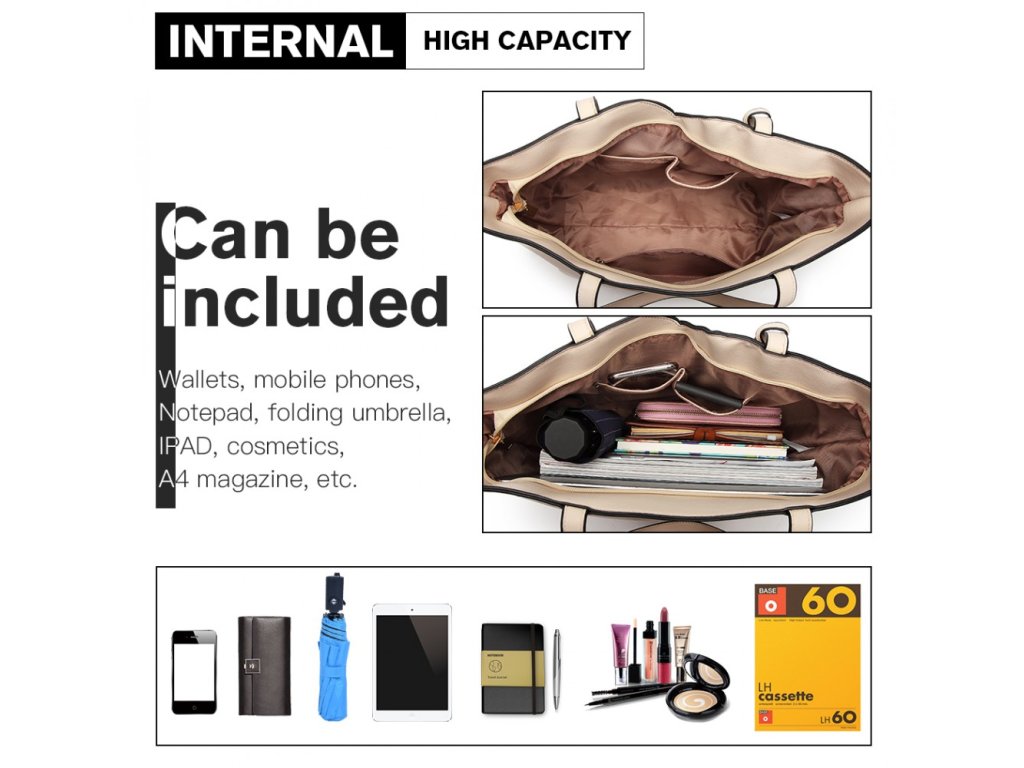 Do tašky se pohodlně vejde deštník, láhev na vodu a různé knihy/diáře a digitální zařízení.