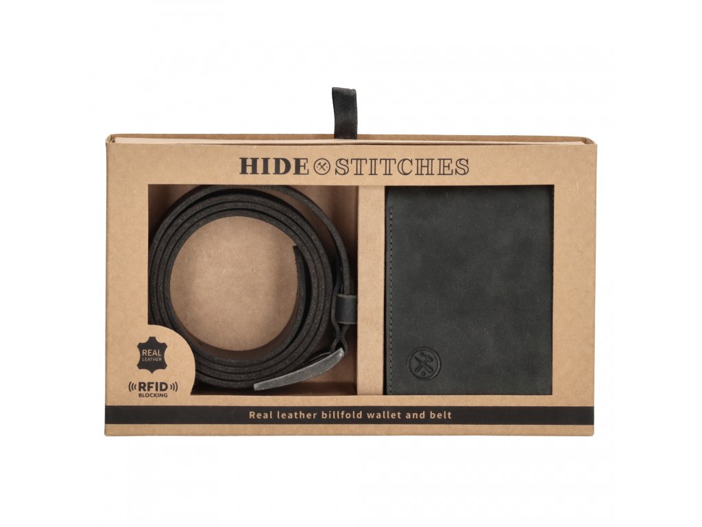 Dárkový set opasek a peněženka Hide & stitches Idaho - černý