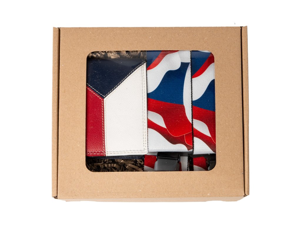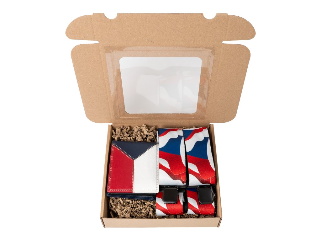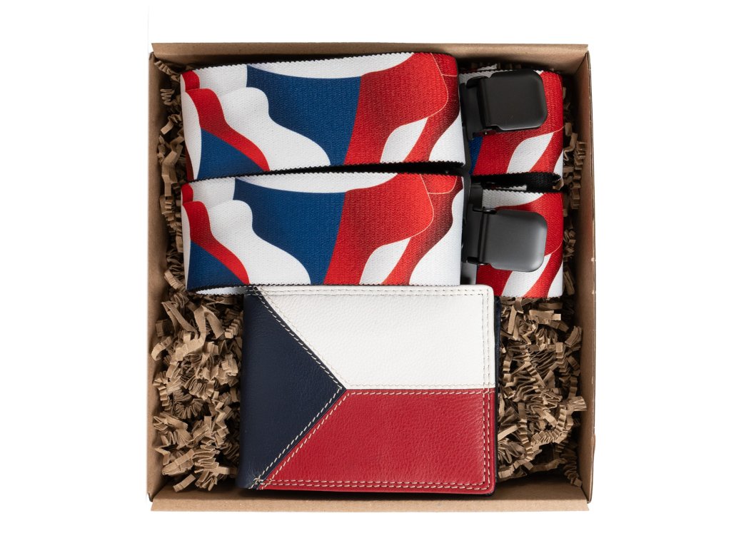Dárkový set pro muže - Kožená peněženka a kšandy - Česká vlajka