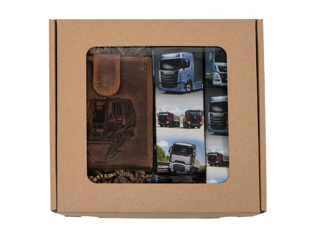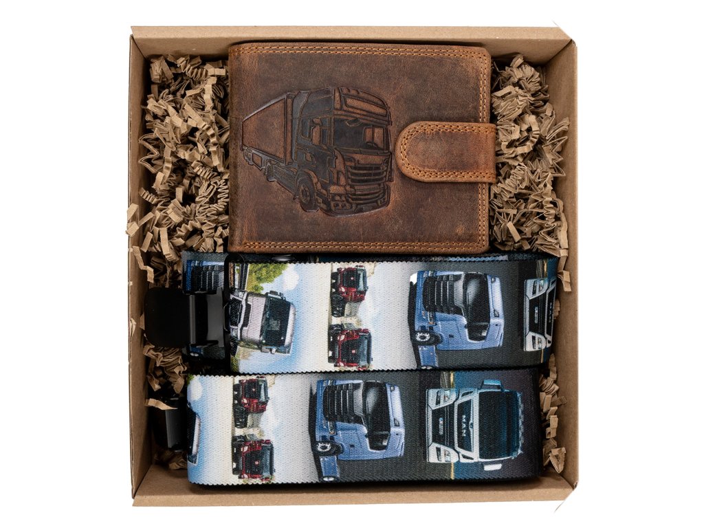Dárkový set pro muže - Kožená peněženka a kšandy - Kamion