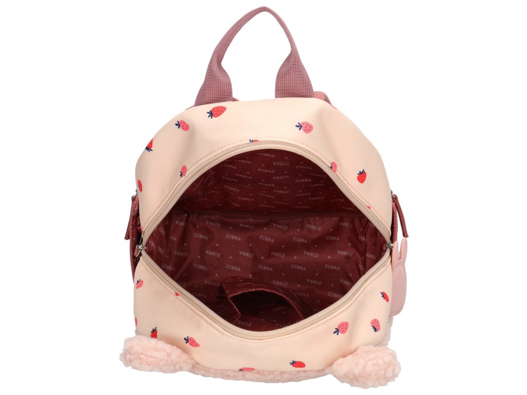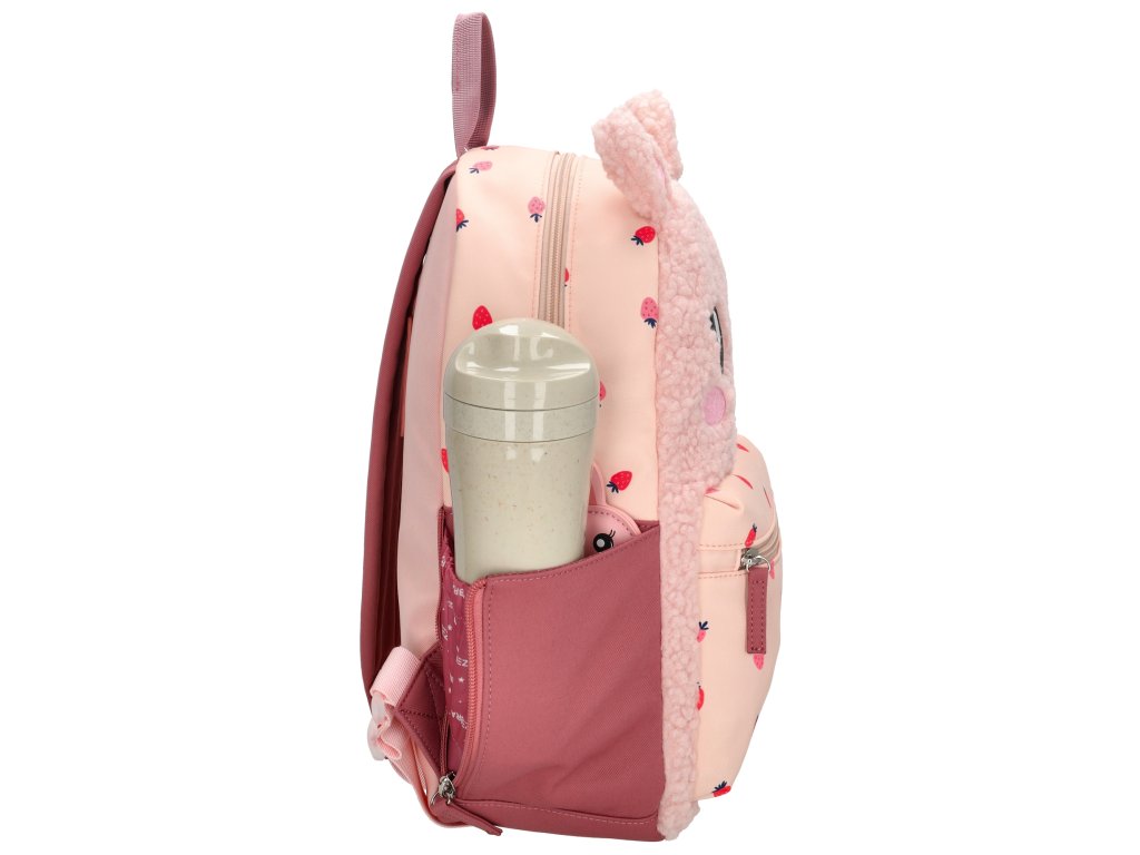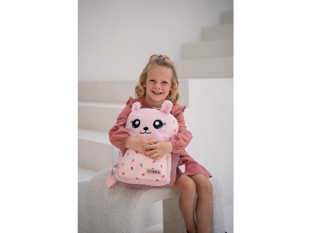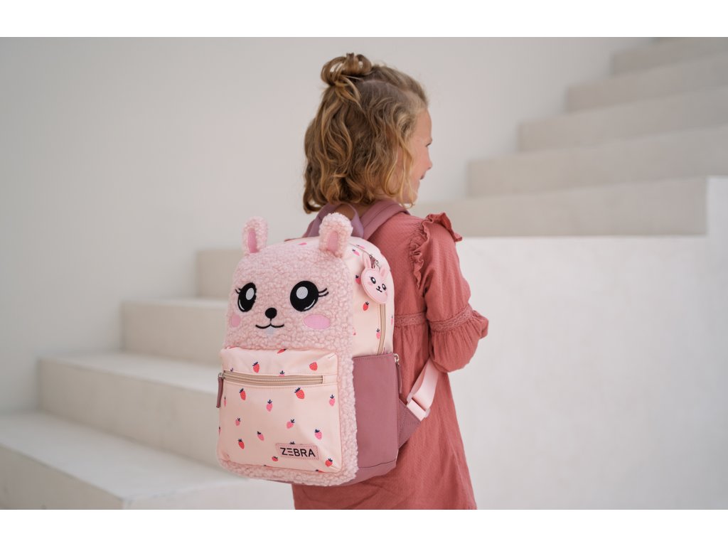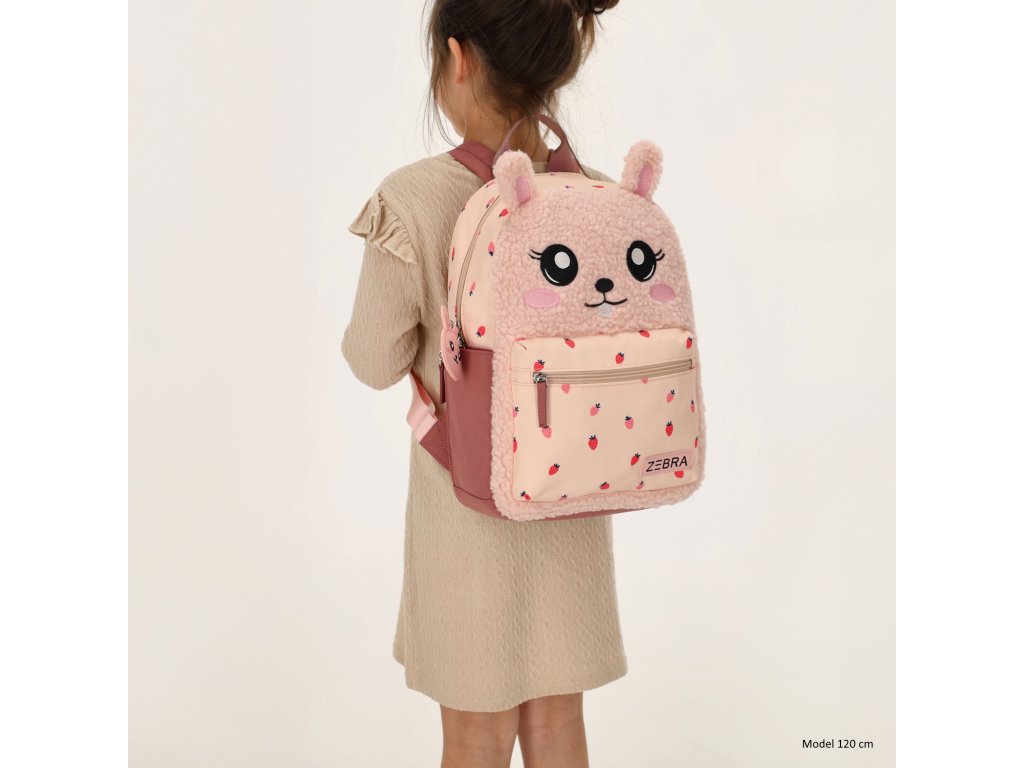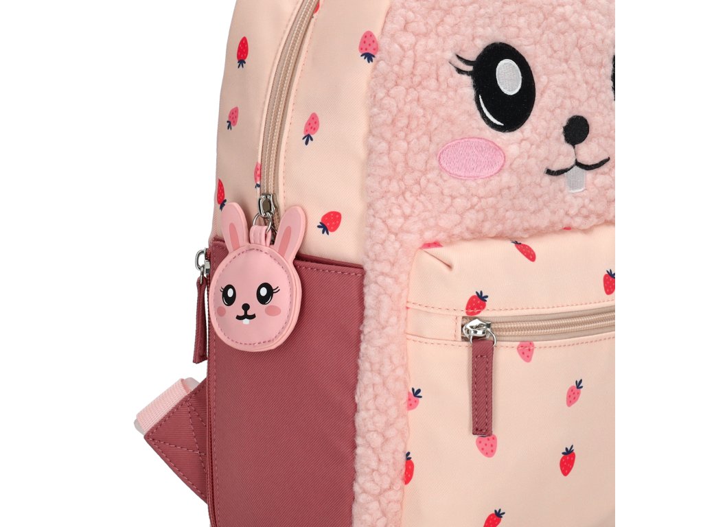 Díky své velikosti je batoh ideální na školní potřeby, svačinu i oblíbenou hračku. Polstrované ramenní popruhy a horní poutko zajišťují pohodlné nošení a snadnou manipulaci. Veselý králíček s roztomilými detaily a motivem jahůdek z něj dělá originální kousek, který si děti zamilují.