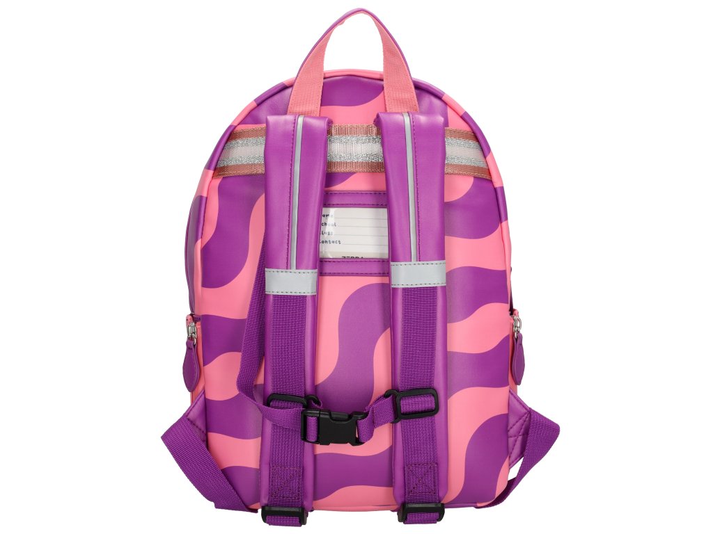 Nastavitelné ramenní popruhy jsou polstrované a dají se vpředu sepnout klipem, aby batoh bezpečně seděl na ramenou. Na zadní straně nechybí štítek na jméno, který usnadní identifikaci batohu.