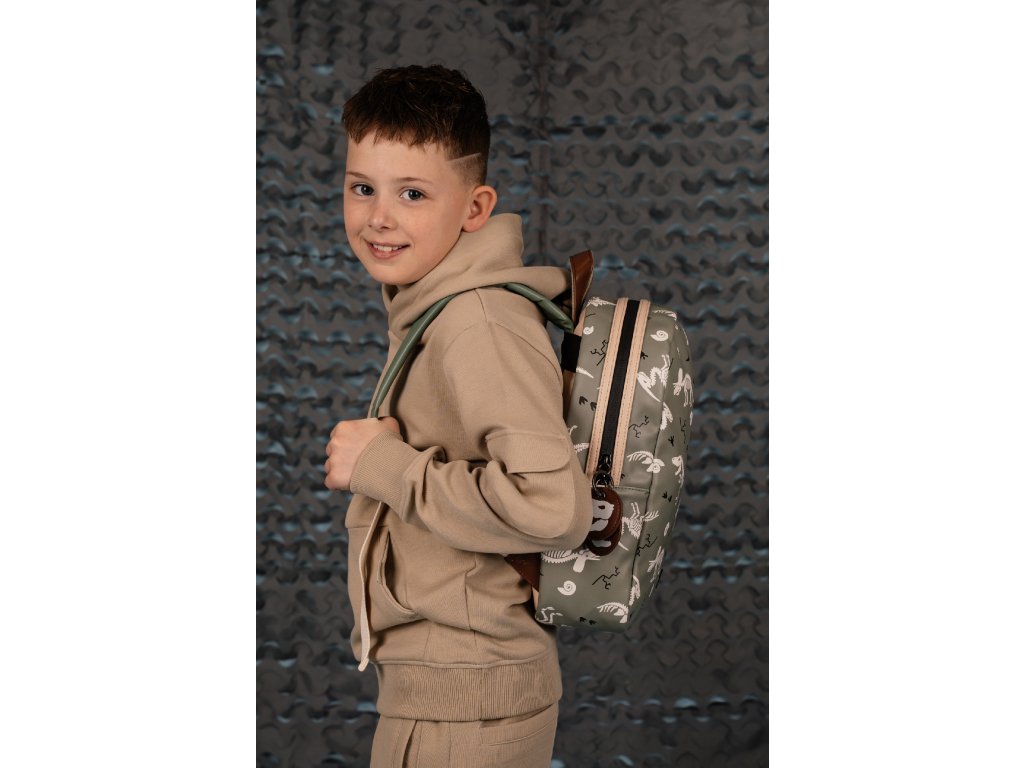 Nastavitelné ramenní popruhy umožňují přizpůsobení podle výšky dítěte a zajistí pohodlné nošení každý den. Vnější povrch z imitace kůže je odolný, snadno se čistí a batoh tak dlouho vydrží i při každodenním používání.