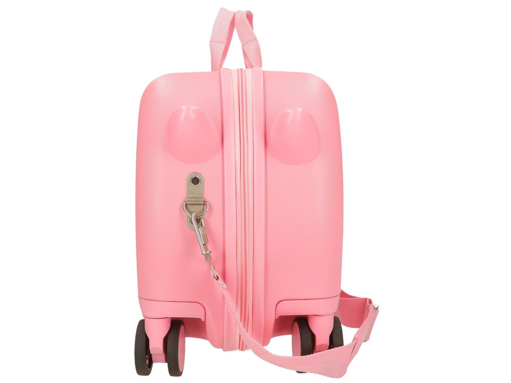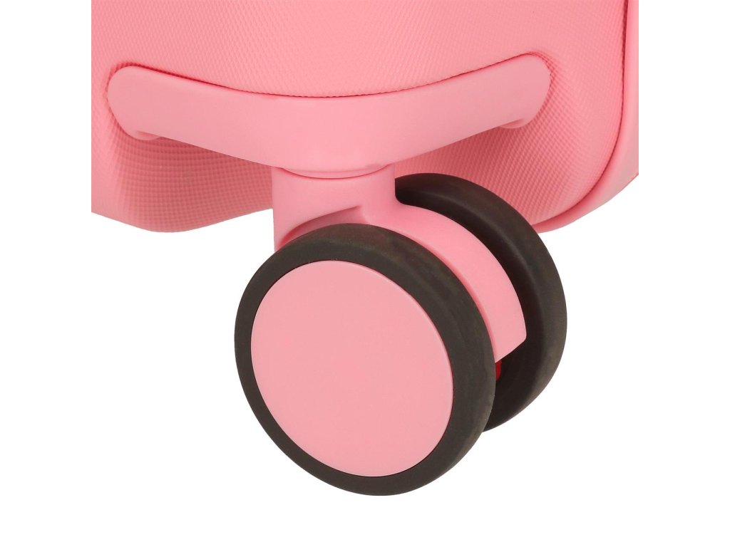 Kufr má dvě pevné rukojeti pro jednoduché uchopení a také nastavitelný odepínací ramenní popruh pro pohodlné nošení. Dvojitá otočná kolečka zaručují hladký pohyb a stabilitu na jakémkoli povrchu, což dětem usnadňuje manipulaci při cestování.