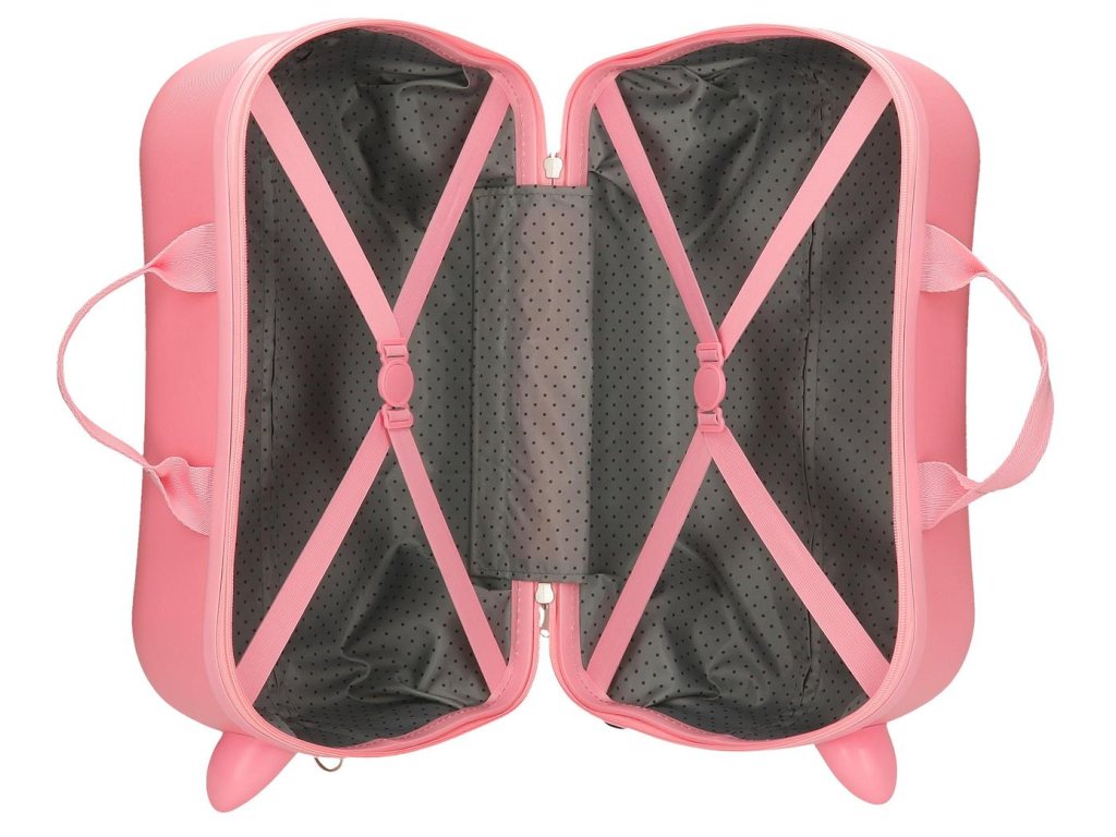 Uvnitř kufru se nacházejí křížové popruhy, které pevně udrží oblečení, hračky i další věci na svém místě. Vnitřní prostor s kapacitou 24,5 litru poskytuje dostatek místa pro všechny nezbytnosti. Díky přehlednému rozložení se děti snadno naučí, jak si své věci správně zorganizovat.