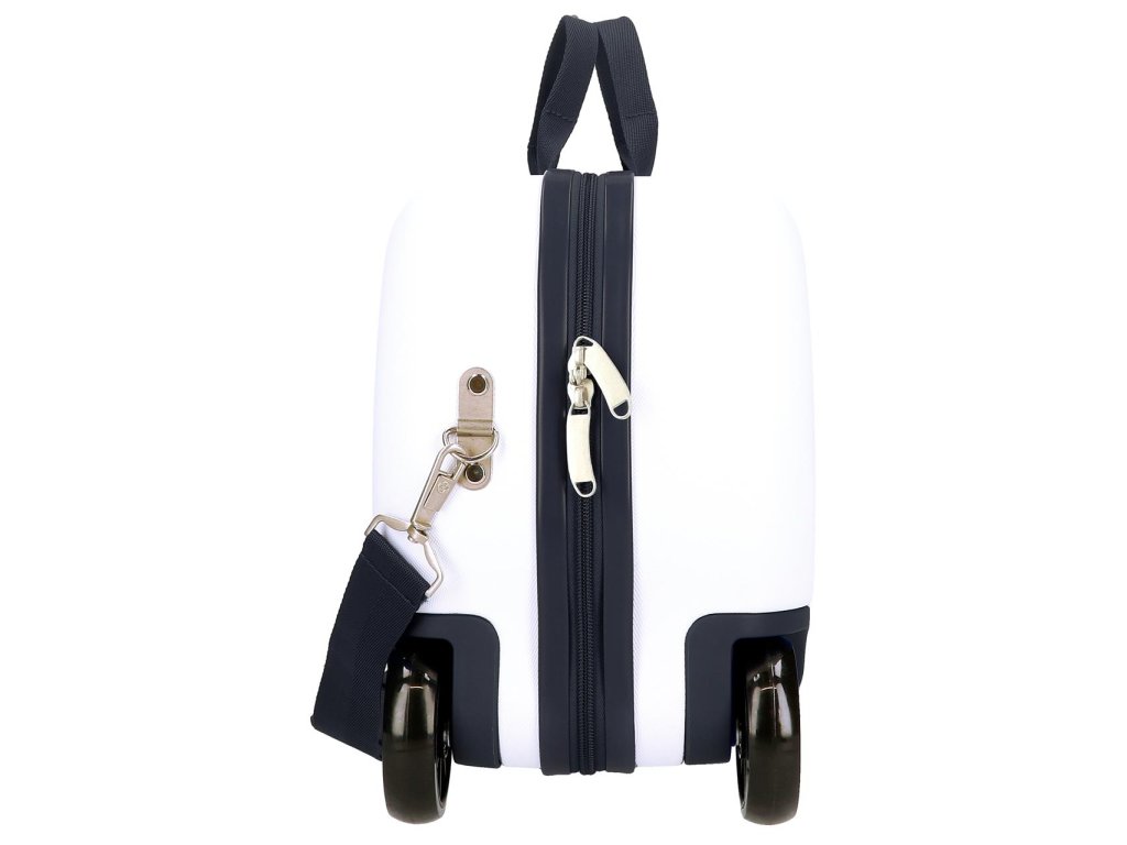 Kufr má dvě pevné rukojeti pro snadné přenášení a nastavitelný odepínací ramenní popruh, který lze přizpůsobit výšce dítěte. Dvojitá otočná kolečka umožňují hladký pohyb po všech typech povrchů a dělají z cestování zábavu.