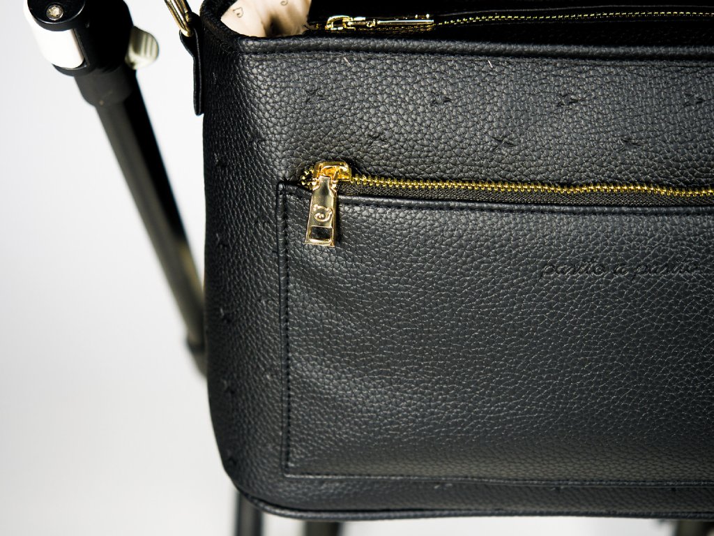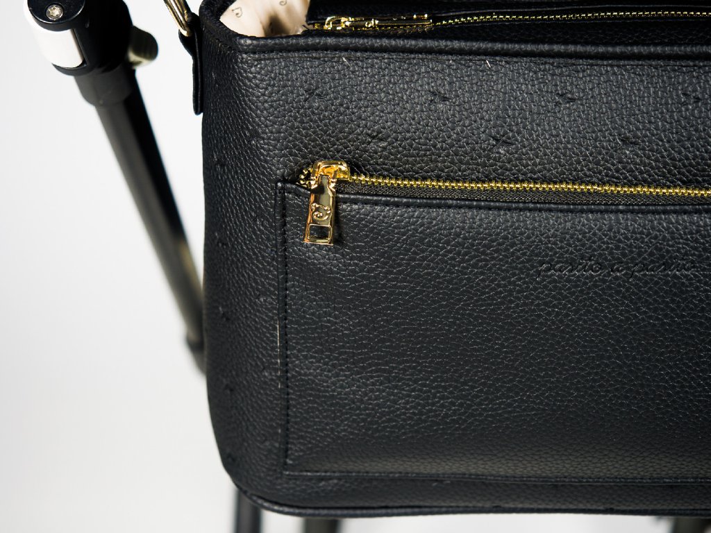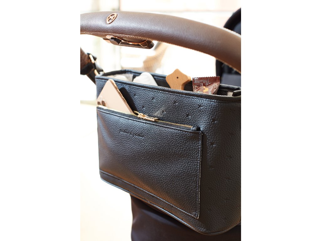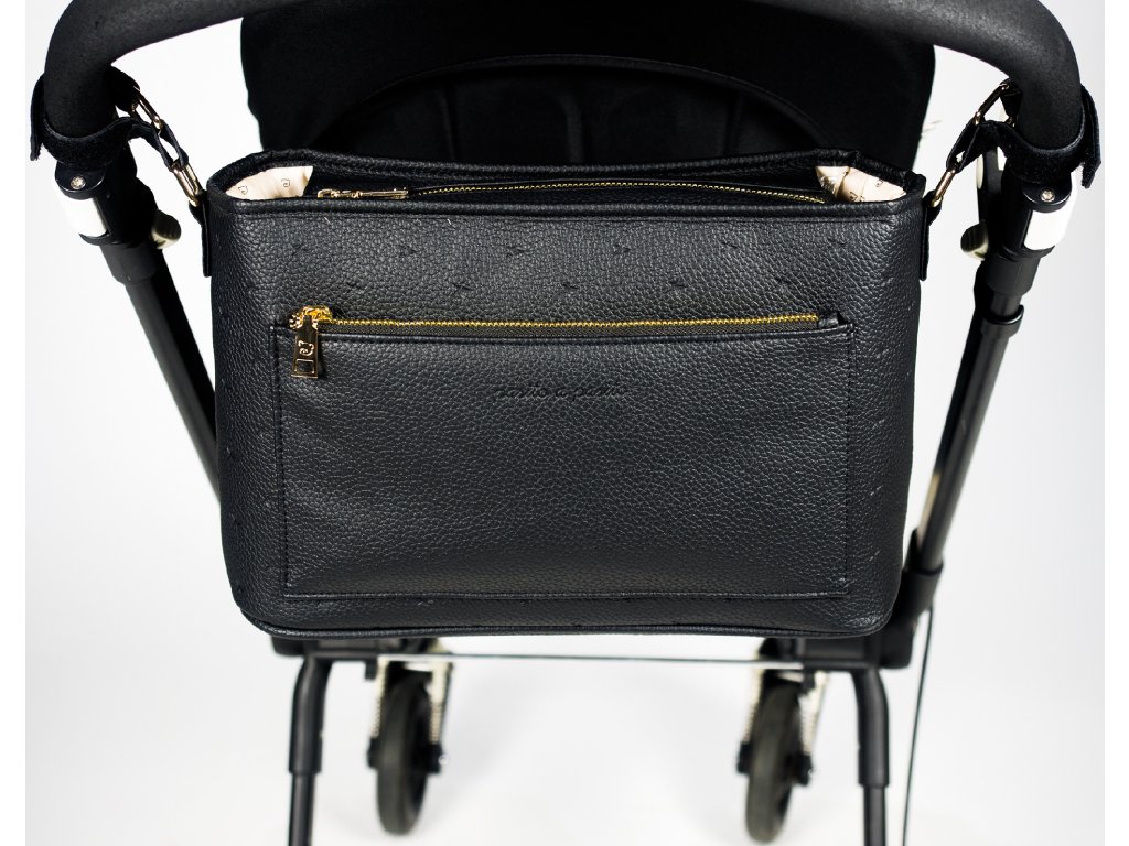 Organizér je vyroben z velmi kvalitní vodoodpudivé ekokůže. Vnitřní prostor je podšitý a úpony na kočárek jsou z kvalitního kovu ve zlaté barvě, takže vydrží i větší zátěž.