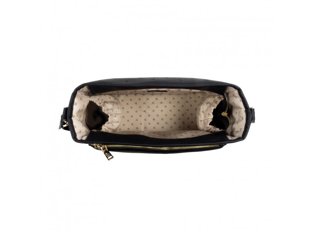 Zapínání hlavní části a přední kapsičky je na kvalitní kovový zip ve zlaté barvě.