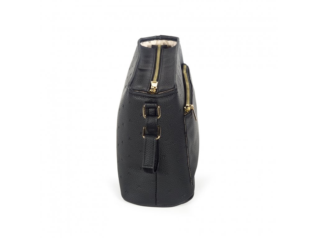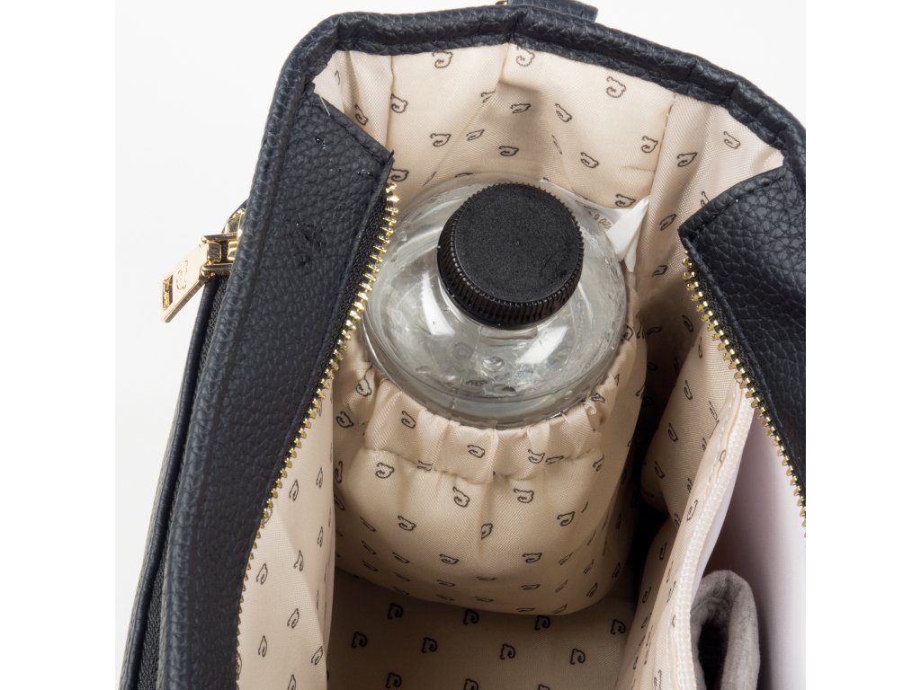 Uvnitř hlavní přihrádky jsou dvě postranní kapsy na gumičku, které skvěle poslouží na lahvičku, pevně ji uchopí a nic se z ní nevylije. Jedna postranní kapsa na zip, které můžete využít na cennosti či diskrétní věci.