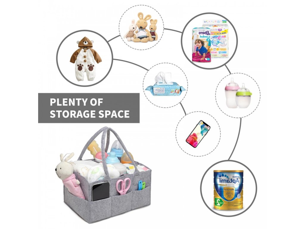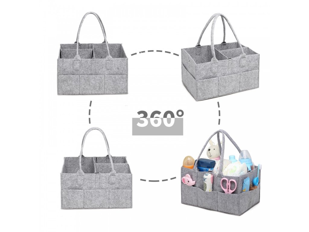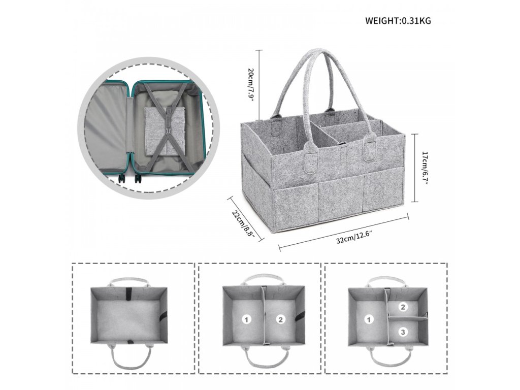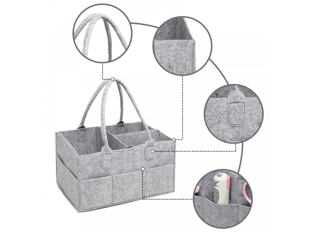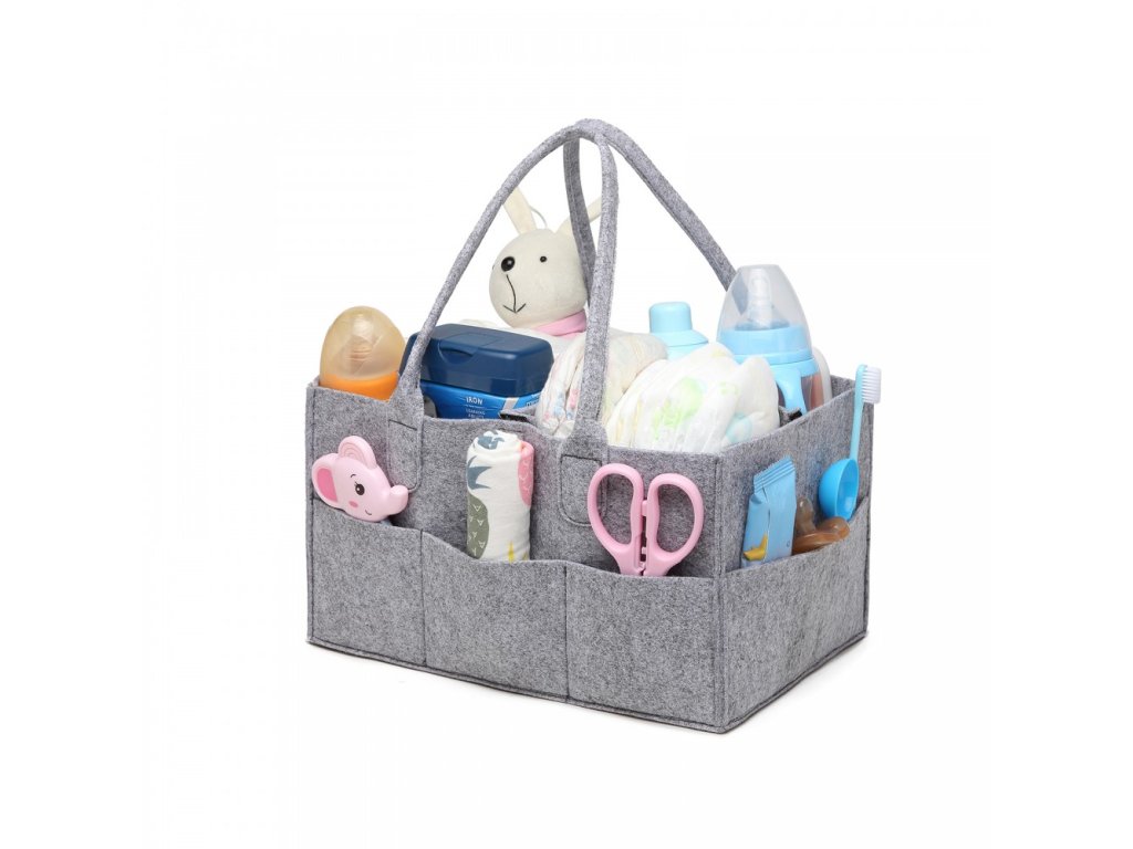 Praktický všestranný filcový organizér pro dětské potřeby v šedé barvě.
